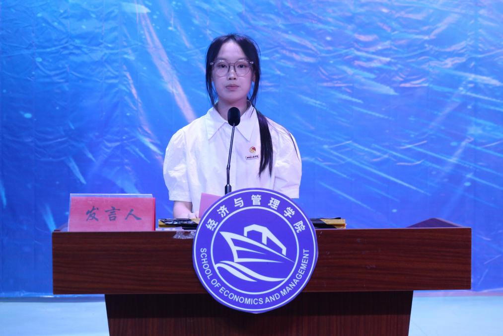 2024級(jí)市場(chǎng)營(yíng)銷4班的林舒怡作為新生代表上臺(tái)發(fā)言?!扒啻喝绯醮?,如朝日,如百卉之萌動(dòng),如利刃之新發(fā)于硎?!彼粤?jiǎn)⒊壬那啻好詾橐?,激?lì)新生們以青春的熱情和朝氣,勇敢地面對(duì)大學(xué)的新挑戰(zhàn)。同時(shí),她還呼吁同學(xué)們要珍惜學(xué)習(xí)時(shí)光,相信自己的能力和潛力,積極參與各項(xiàng)活動(dòng),樹立正確的人生觀和價(jià)值觀,不斷地追求進(jìn)步和成長(zhǎng)。