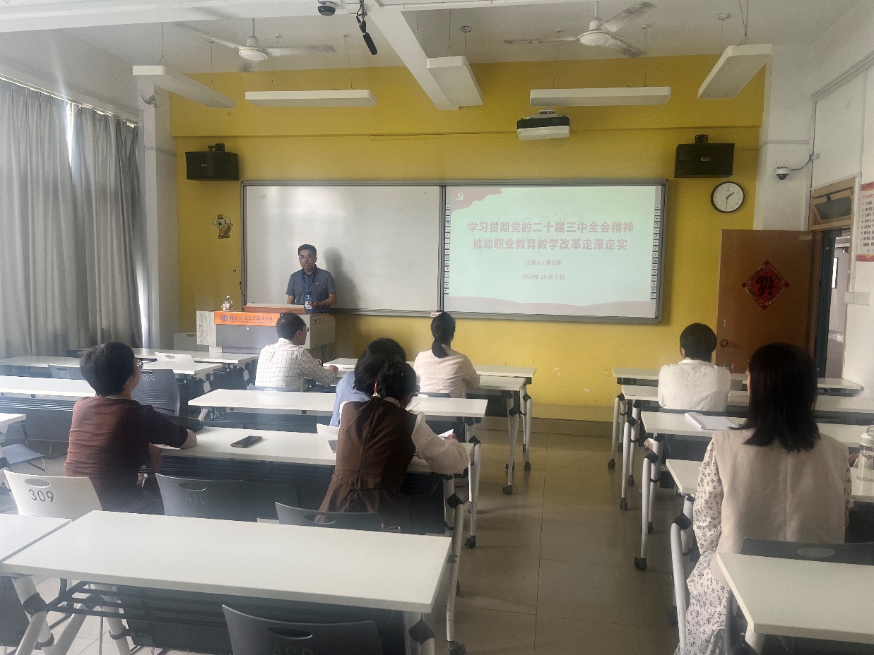 房曰榮院長指出全會審議通過的《中共中央關于進一步全面深化改革、推進中國式現(xiàn)代化的決定》,是在新的歷史起點上推進全面深化改革的又一次總動員、總部署。要深入學習全會精神,將學習成果轉化為推動職業(yè)教育教學改革的具體行動。要深化產(chǎn)教融合、校企合作,創(chuàng)新人才培養(yǎng)模式,構建教學標準體系,健全教學質量管理和保障制度,全面提高職業(yè)教育人才培養(yǎng)質量。