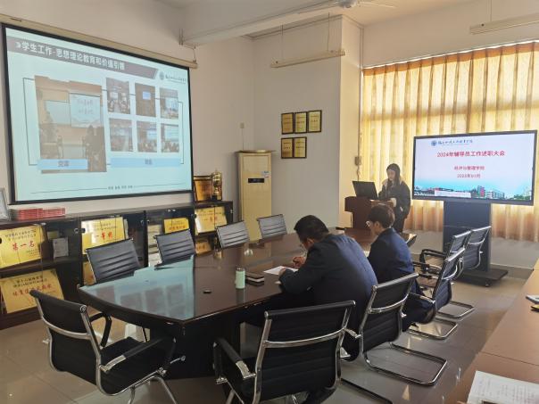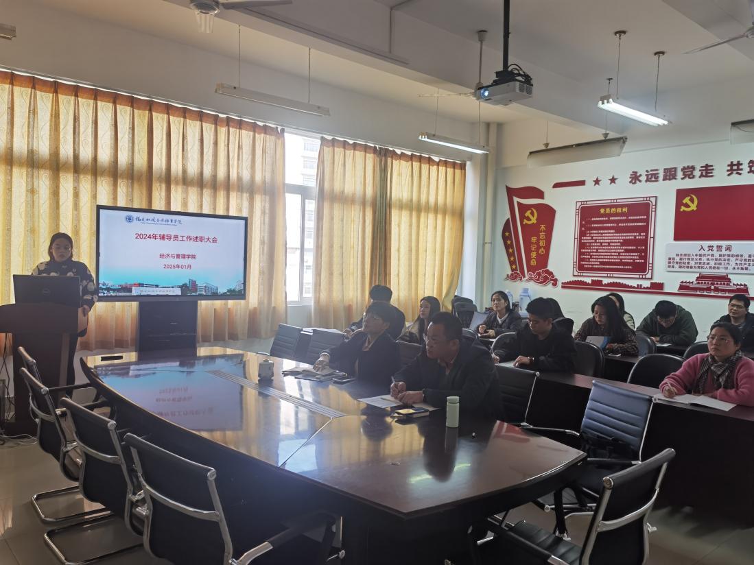 近日,經(jīng)濟(jì)與管理學(xué)院2024年度輔導(dǎo)員述職大會(huì)在學(xué)院順利舉行,學(xué)院黨總支副書(shū)記阮毅(主持工作)、黨總支副書(shū)記林麗萍及全體輔導(dǎo)員參加了此次會(huì)議。大會(huì)旨在總結(jié)過(guò)去一年中輔導(dǎo)員隊(duì)伍的工作成效,分享經(jīng)驗(yàn),并展望未來(lái)學(xué)生工作的發(fā)展方向。