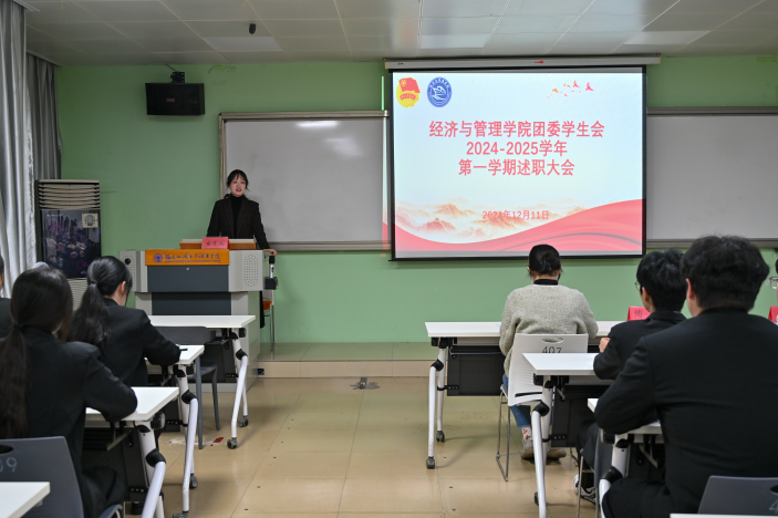經(jīng)濟(jì)與管理學(xué)院團(tuán)委學(xué)生會(huì)2024年度述職大會(huì)于2024年12月11日晚在求實(shí)樓407教室順利召開,學(xué)院團(tuán)委書記傅一丹、團(tuán)委副書記吳霜婷、團(tuán)委組織委員陳艷蕓、團(tuán)委宣傳委員官源及全體部門負(fù)責(zé)人出席此次會(huì)議。本次大會(huì)旨在總結(jié)過去一年團(tuán)委學(xué)生會(huì)工作的成績(jī)與不足,分析問題,明確未來(lái)工作的重點(diǎn)和發(fā)展方向。