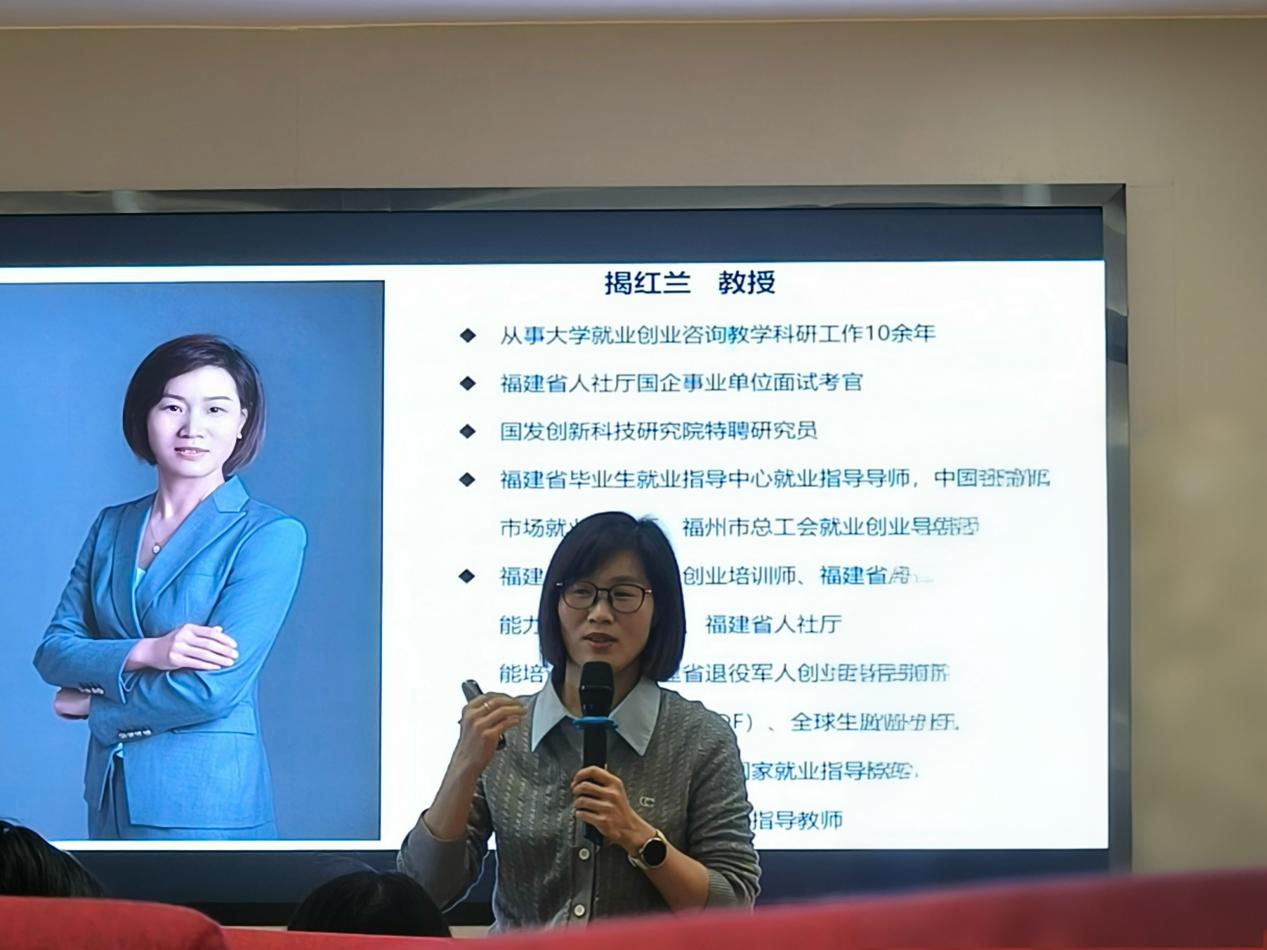 為深入學(xué)習(xí)貫徹黨的二十大精神,有效助力學(xué)生增強(qiáng)行業(yè)認(rèn)知、挖掘潛能優(yōu)勢、提升就業(yè)能力,扎實(shí)推進(jìn)落實(shí)快就業(yè)、好就業(yè)、穩(wěn)就業(yè),2025年3月19日下午,經(jīng)濟(jì)與管理學(xué)院在福船園藝新樓304學(xué)術(shù)報(bào)告廳舉辦了“智啟新程:會計(jì)專業(yè)學(xué)生的就業(yè)突圍之道”講座。講座由福建江夏學(xué)院工商管理學(xué)院揭紅蘭教授主講,我院2023級大數(shù)據(jù)與會計(jì)專業(yè)學(xué)生參與了講座。