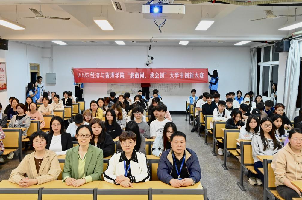 為貫徹落實(shí)黨的二十大精神,深入貫徹落實(shí)習(xí)近平總書(shū)記關(guān)于教育的重要論述和給“青年紅色筑夢(mèng)之旅”大學(xué)生回信及中國(guó)國(guó)際大學(xué)生創(chuàng)新大賽參賽學(xué)生代表重要回信精神,全面推進(jìn)教育、科技、人才工作,把創(chuàng)新教育貫穿教育活動(dòng)全過(guò)程,以創(chuàng)造之教育培養(yǎng)創(chuàng)造之人才,持續(xù)深化我院創(chuàng)新創(chuàng)業(yè)教育改革、提升大學(xué)生創(chuàng)新創(chuàng)業(yè)能力,經(jīng)濟(jì)與管理學(xué)院于2025年4月10日在求實(shí)樓408教室舉辦“我敢闖、我會(huì)創(chuàng)”大學(xué)生創(chuàng)新大賽。