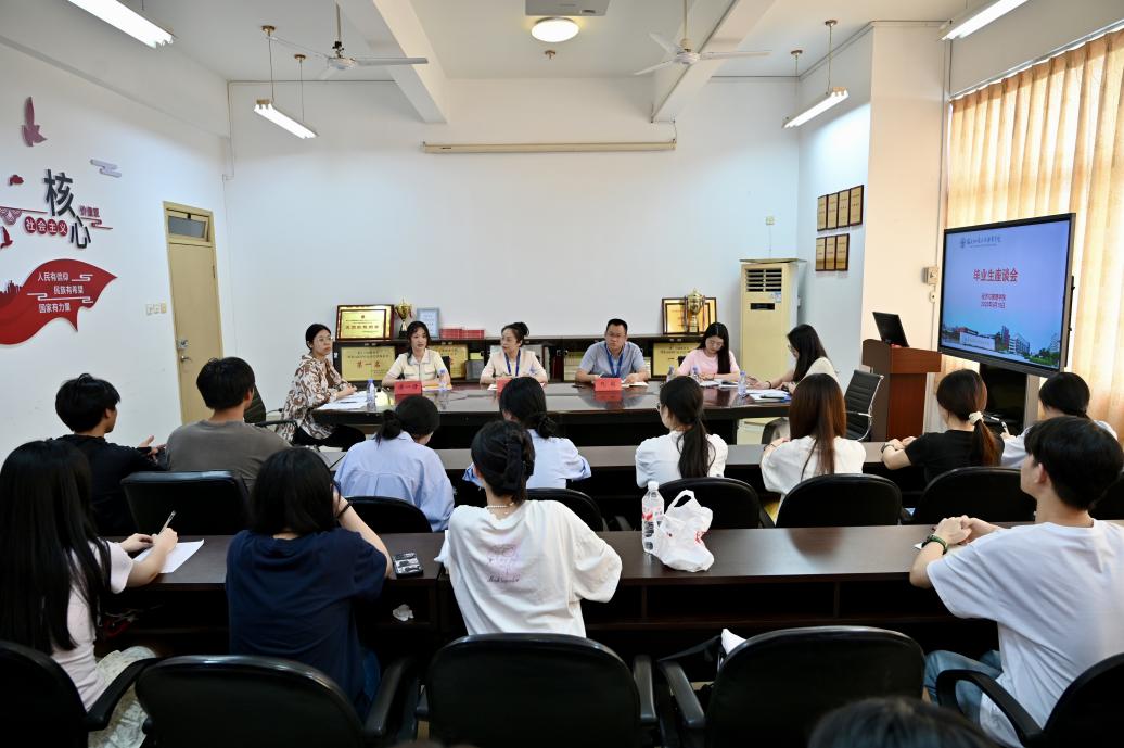 為普及國家助學貸款政策,強化畢業(yè)生的誠信意識和感恩之心,我院于2025年5月15日在求實樓412會議室舉辦2025屆畢業(yè)生資助座談會。本次會議由學院團委書記傅一丹主持,黨總支書記陳慧、黨總支副書記(負責行政工作)阮毅、資助負責人、畢業(yè)班輔導員及畢業(yè)生代表共同參與。