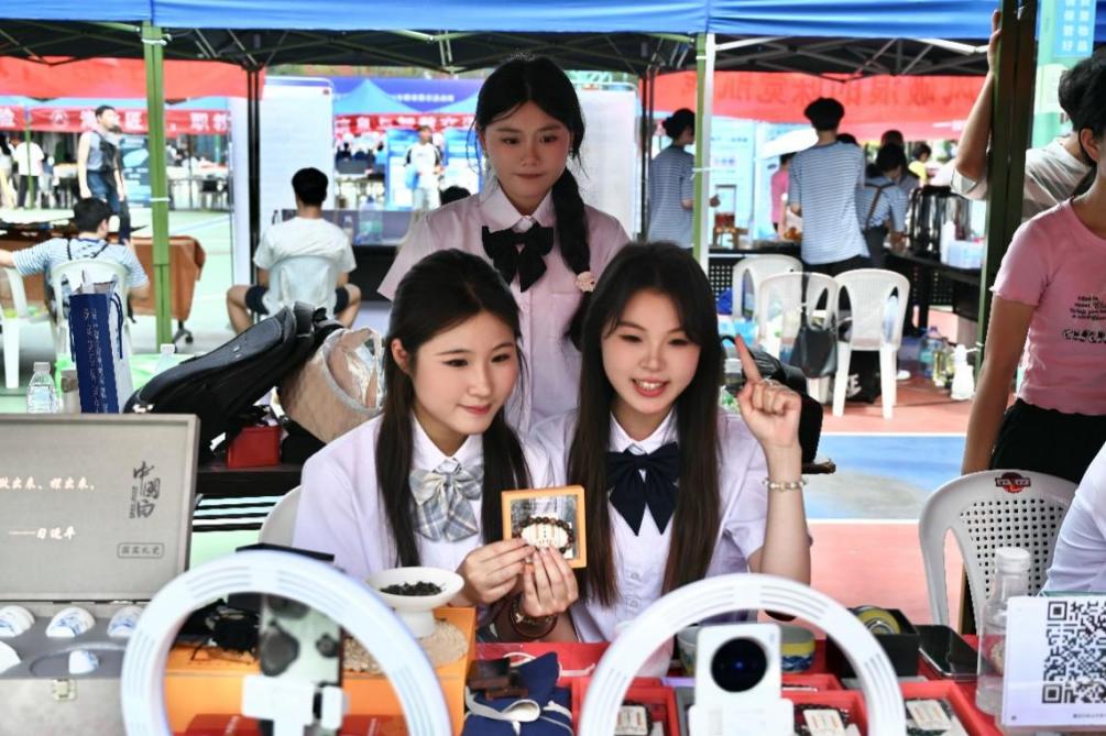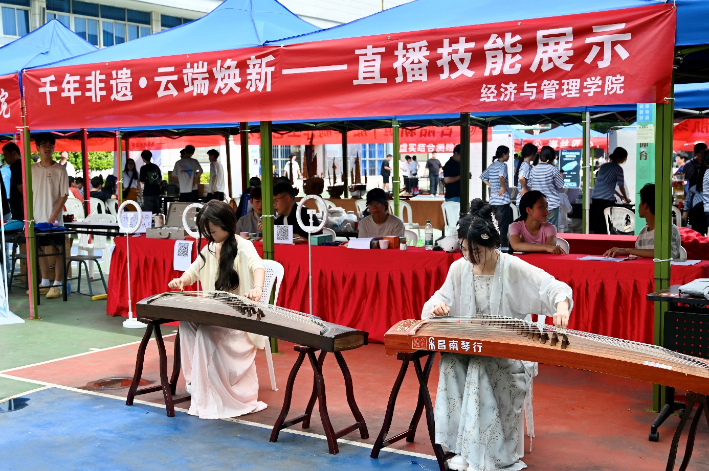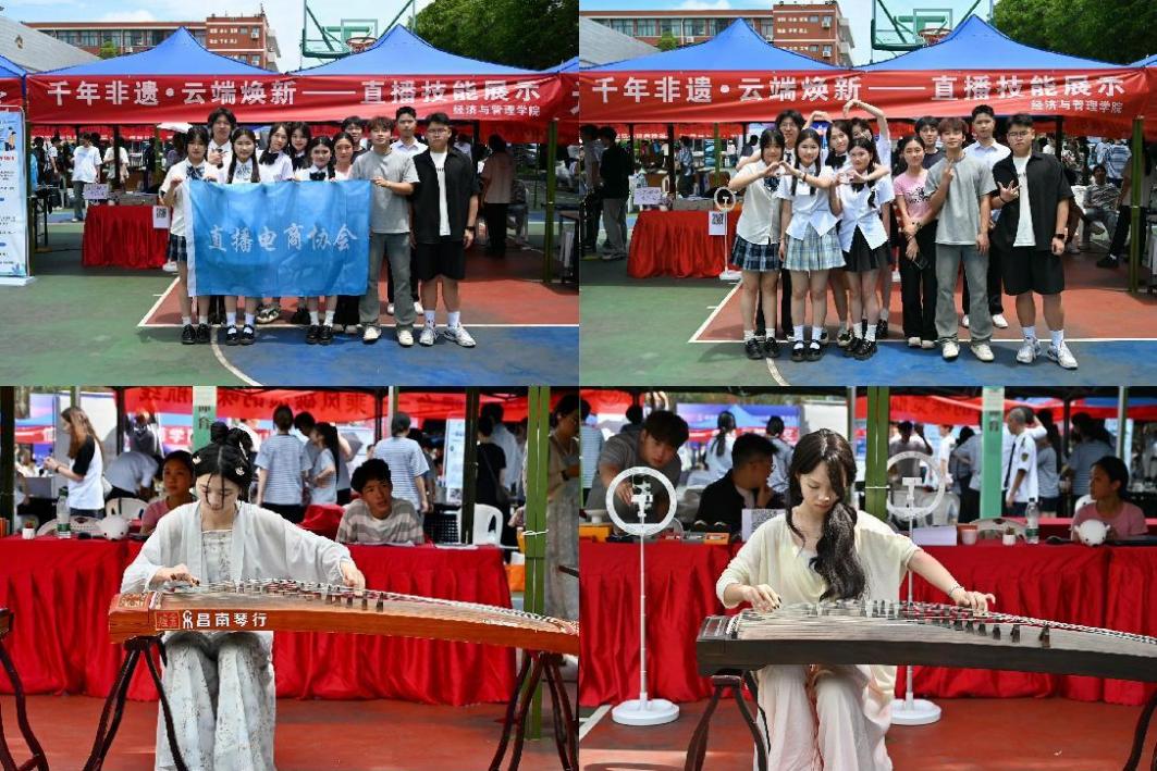 為積極響應(yīng)職業(yè)教育活動周號召,深化產(chǎn)教融合,提升學生實踐能力,5月17日在福道園文體中心前,經(jīng)濟與管理學院開展了“千年非遺?云端煥新——直播技能展示”2025年職教周活動。