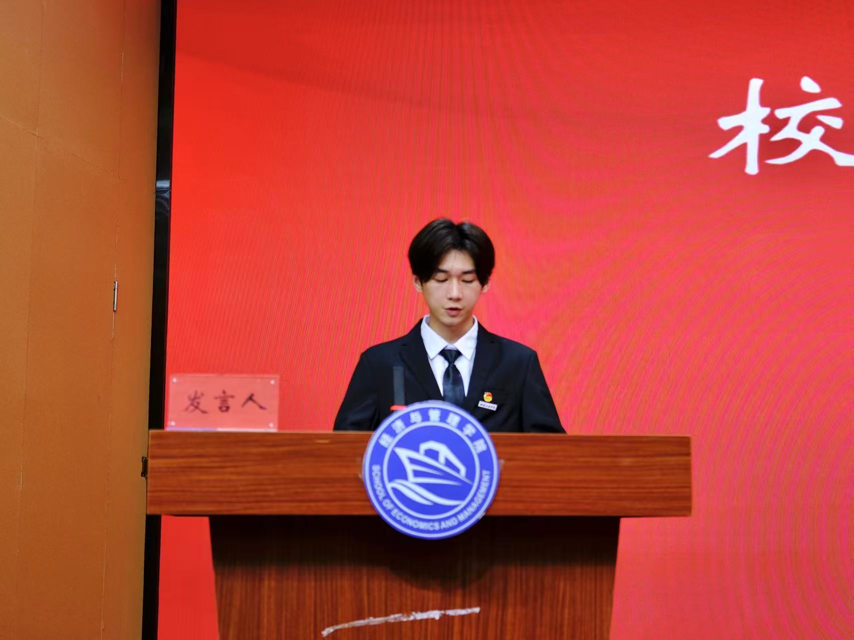 校學(xué)生會(huì)主席團(tuán)成員藍(lán)斌代表校學(xué)生會(huì)致辭。他高度評(píng)價(jià)了經(jīng)濟(jì)與管理學(xué)院學(xué)生會(huì)在學(xué)院黨總支領(lǐng)導(dǎo)和團(tuán)委、校學(xué)生會(huì)指導(dǎo)下取得的各項(xiàng)工作成效,特別是在提升同學(xué)滿意度、大局貢獻(xiàn)度和社會(huì)認(rèn)可度,塑造清新陽光組織形象方面所做的努力。藍(lán)斌強(qiáng)調(diào)本次大會(huì)是全院同學(xué)政治生活中的一件大事,希望新一屆學(xué)生會(huì)以此為契機(jī),持續(xù)加強(qiáng)自身建設(shè),號(hào)召全體代表積極履職,為學(xué)生會(huì)發(fā)展注入新活力。