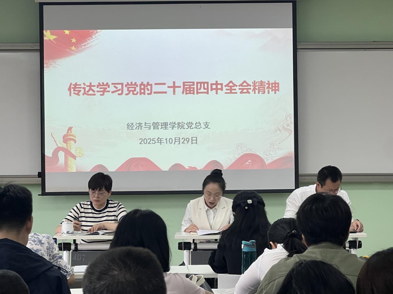 為深入學習貫徹黨的二十屆四中全會精神,切實把全院黨員干部師生的思想和行動統(tǒng)一到全會精神上來,10月29日,經濟與管理學院召開專題學習會,黨總支書記陳慧主持會議并傳達全會核心要義,全體教師參加會議。