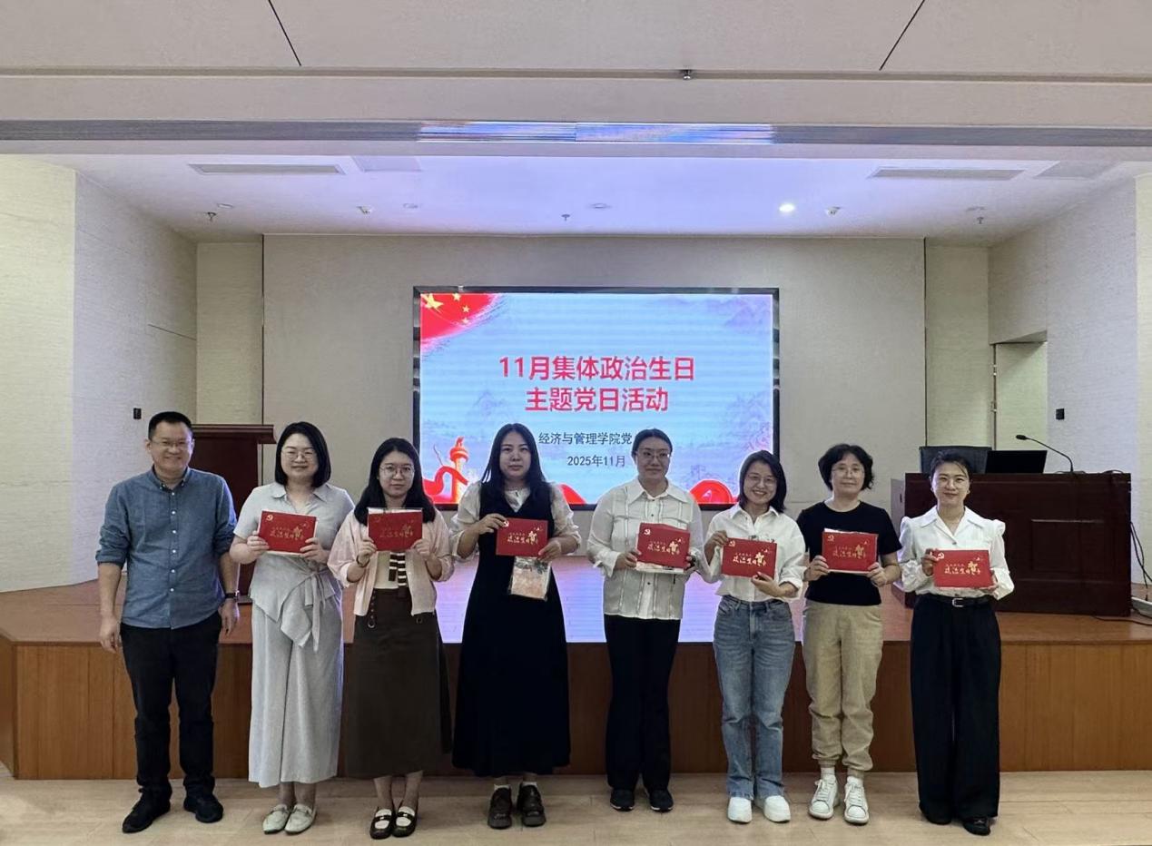 為深入學習貫徹習近平新時代中國特色社會主義思想,深化教師師德、黨性教育,筑牢信仰之基與使命意識,11月7日,經(jīng)濟與管理學院黨總支在藝新樓304會議室舉行11月入黨同志集體政治生日活動。