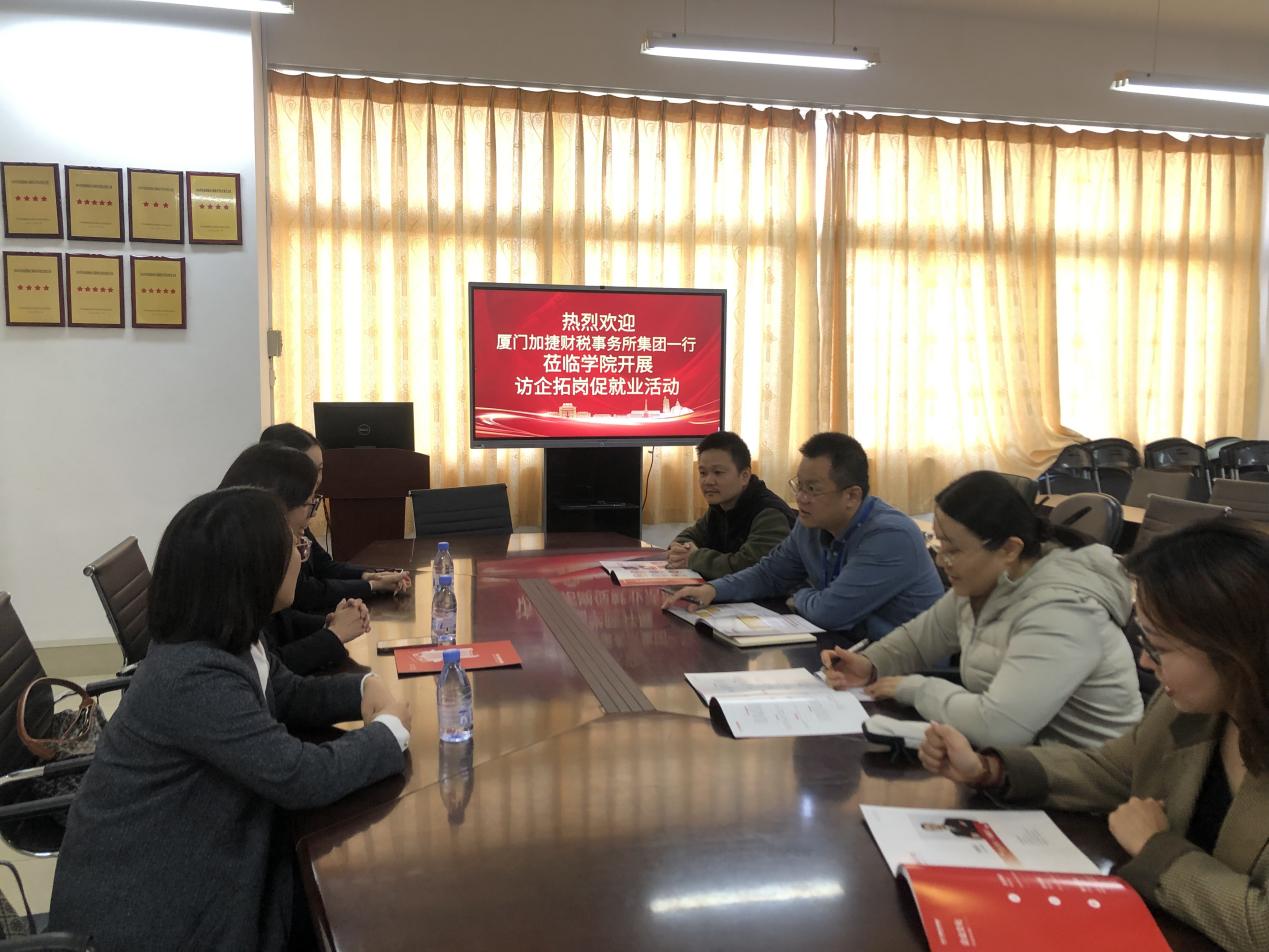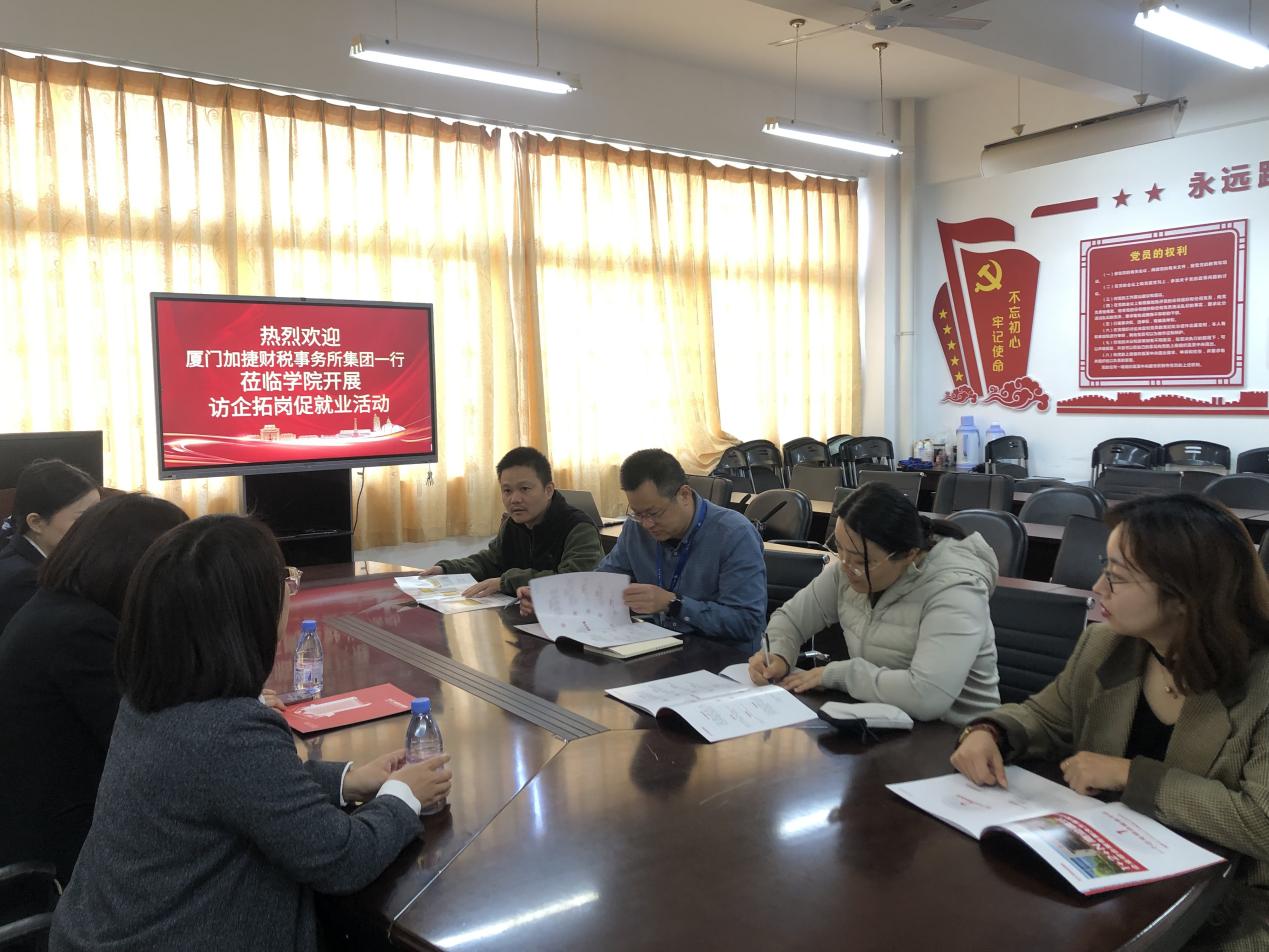2025年11月20日下午,加捷集團副總經(jīng)理李霞應(yīng)邀來訪我院,與經(jīng)濟與管理學(xué)院開展訪企拓崗促就業(yè)活動,集團人事主管、福州分公司負責(zé)人陪同到訪。經(jīng)濟與管理學(xué)院院長阮毅、大數(shù)據(jù)與會計教研室主任林潔瑩及專業(yè)骨干教師共同參與了本次座談。雙方圍繞校企合作、人才培養(yǎng)、課程共建與學(xué)生就業(yè)等議題展開深入交流,共同探討合作新路徑。