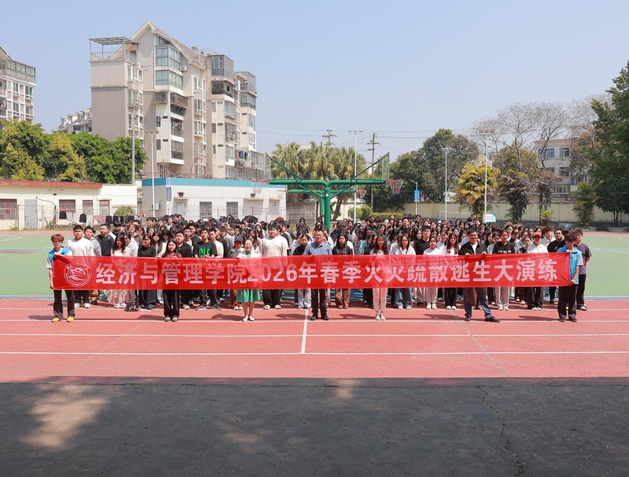 2026年3月18日中午,經(jīng)濟與管理學院在南區(qū)、排下校區(qū)操場組織開展“筑牢防火墻,防患于未‘燃’”消防演練活動。我院黨政領導班子、輔導員們共同參與,通過實戰(zhàn)化演練全面提升消防安全素養(yǎng)與應急處置能力,筑牢校園安全防線。