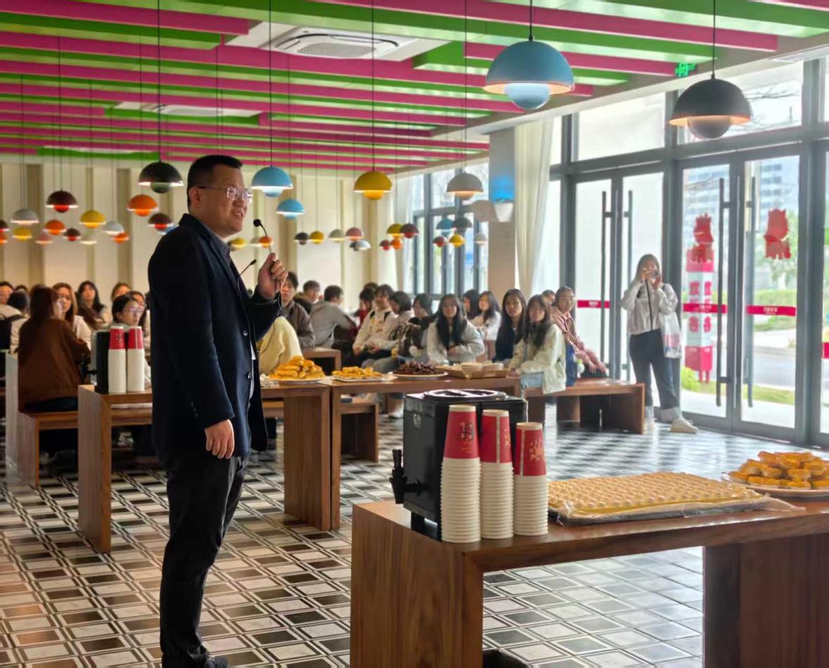 劉君榕副總經(jīng)理向?qū)W院一行分享了福建華豐賀氏餐飲管理有限公司的發(fā)展歷程、品牌定位、連鎖經(jīng)營業(yè)務布局及未來發(fā)展規(guī)劃。他提到,華豐賀氏作為區(qū)域知名烘焙食品企業(yè),深耕食品生產(chǎn)、連鎖門店運營、品牌營銷及財務管控等領(lǐng)域,與經(jīng)濟與管理學院各專業(yè)方向高度契合。他表示,華豐賀氏高度重視人才隊伍建設(shè),開放儲備干部、門店管理、財務核算、市場營銷等優(yōu)質(zhì)崗位,提供完善的晉升通道與有競爭力的薪酬待遇,竭誠歡迎學子入職成長。