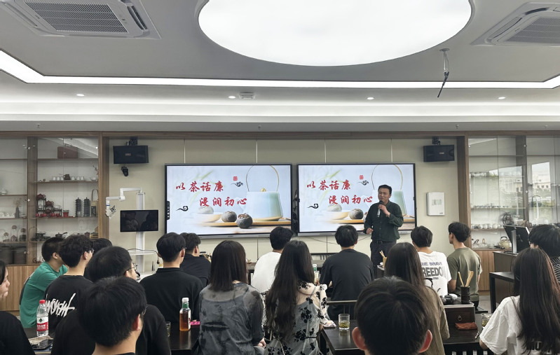 隨后,連江縣委黨校百人講師團(tuán)成員陳鋒老師作為分享會(huì)特邀嘉賓,為大家作題為“以茶養(yǎng)廉,匯聚清廉正能量”茶廉文化課。他以“茶八德”為引,從中國(guó)茶道、中國(guó)茶德精神要義及以“茶”養(yǎng)廉的傳統(tǒng)文化等方面娓娓道來(lái),深刻講解了“康、樂(lè)、甘、香、和、清、敬、美”的茶文化,讓師生全面了解“茶”有“廉”之神、“廉”有“茶”之韻,使大家深刻明白“干凈是一杯好茶的底色,清廉是為人必備的品格”的道理。