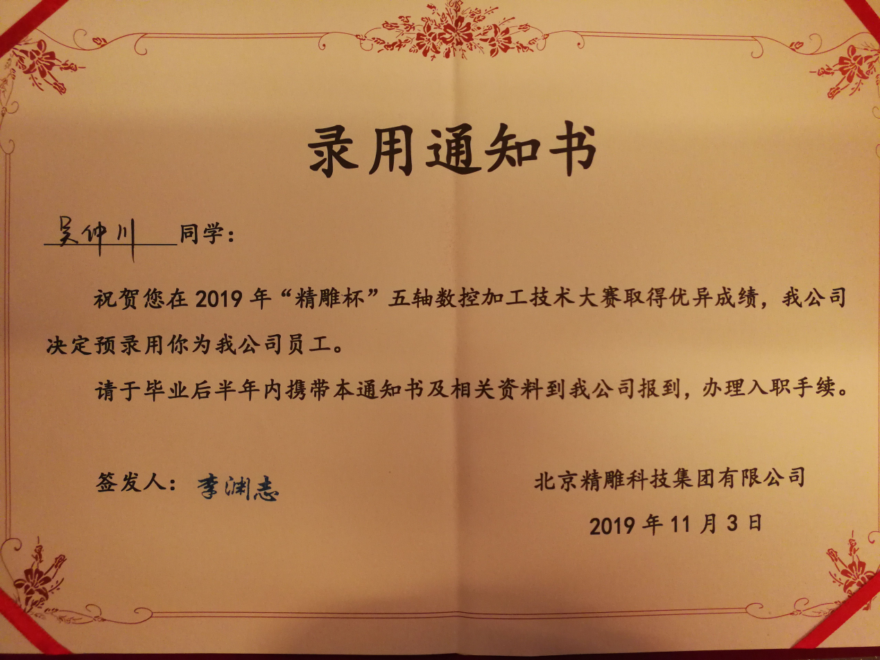 熱烈祝賀吳仲川、魏再煌同學(xué)在2019年度全國(guó)五軸數(shù)控