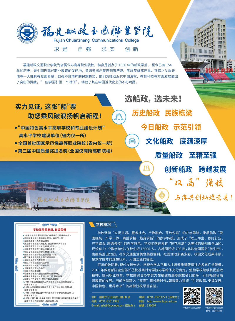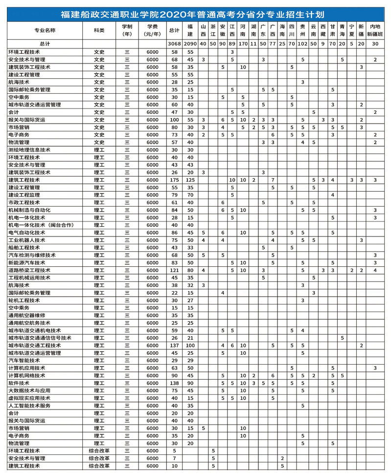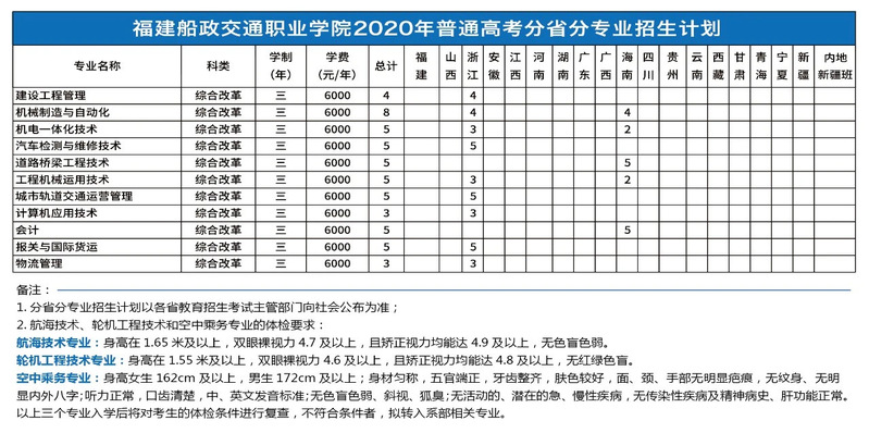 福建船政交通職業(yè)學院2020年普通高考分省分專業(yè)招生計劃