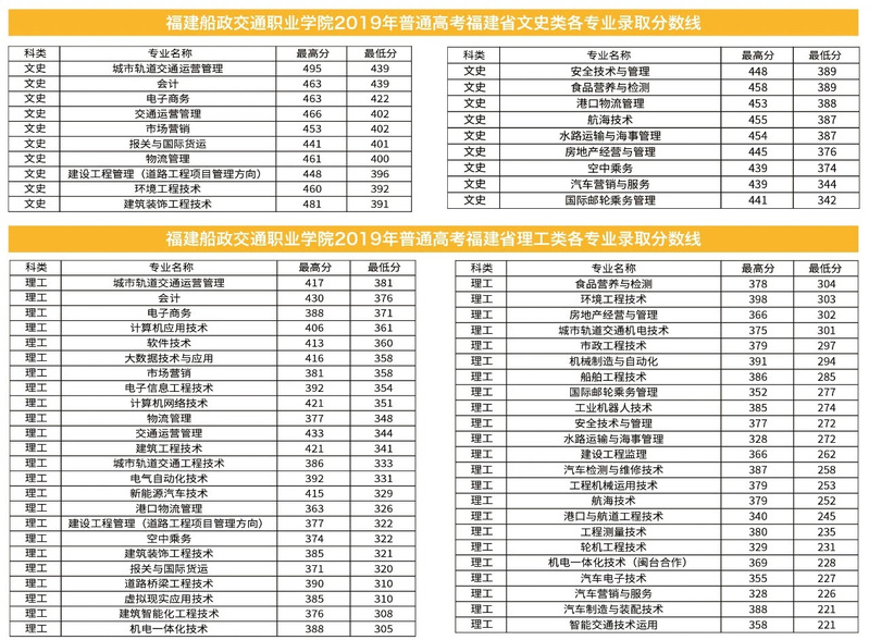 2019年普通高考福建省文史、理工類各專業(yè)錄取分數(shù)線