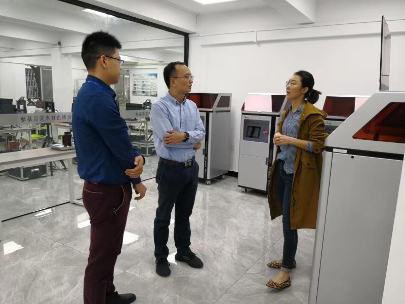 福建幼兒師范高等??茖W(xué)校陳峰校長參觀返校后,立即選派該?,F(xiàn)教中心陳寧華主任、人文系姜平主任帶領(lǐng)相關(guān)專業(yè)教師一行7人于11月23日前來我校參觀學(xué)習(xí),機(jī)械與智能制造學(xué)院王水發(fā)副院長陪同,程艷和鐘燕華老師全程講解。主要介紹了增材制造實(shí)訓(xùn)基地建設(shè)應(yīng)用情況,就如何激發(fā)學(xué)生對3D打印的興趣,學(xué)生創(chuàng)新意識的培養(yǎng),創(chuàng)造性思維的啟發(fā)進(jìn)行了深入探討,為福建幼兒師范高等專科學(xué)校擬建相關(guān)實(shí)驗(yàn)室提供了建設(shè)性意見。