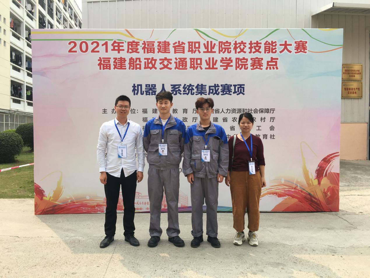 2021年4月1日至4月2日,來自全省11所高職院校的11支代表隊齊聚福建船政交通職業(yè)學院參加2021年福建省職業(yè)院校技能大賽(高職組)機器人系統(tǒng)集成賽項的比賽。經(jīng)過兩天緊張激烈的比賽,由機械與智能制造學院王水發(fā)、童曉薇兩位老師指導的韓冰峰、黃鑫鑫同學獲得一等獎。