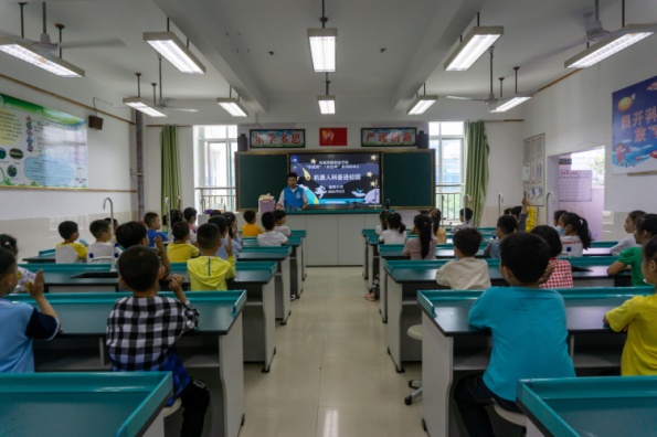 519日,我院機(jī)器人協(xié)會(huì)在福州市施程小學(xué)開展“職教周”、“科技周”系列活動(dòng)之“助力科學(xué)普及,放飛科技?jí)粝搿睓C(jī)器人科普進(jìn)校園活動(dòng)。此次活動(dòng)共有3項(xiàng)科普內(nèi)容,分別是機(jī)器人知識(shí)普及、機(jī)器人作品展示與體驗(yàn)與機(jī)器人知識(shí)競答。活動(dòng)中,我院機(jī)器人協(xié)會(huì)成員向同學(xué)們講解了各類人工智能機(jī)器人在多個(gè)領(lǐng)域的神奇作用,小朋友們對(duì)此反應(yīng)熱烈,引發(fā)了他們對(duì)未來智能社會(huì)的無限暢想,課堂氣氛濃厚活躍。