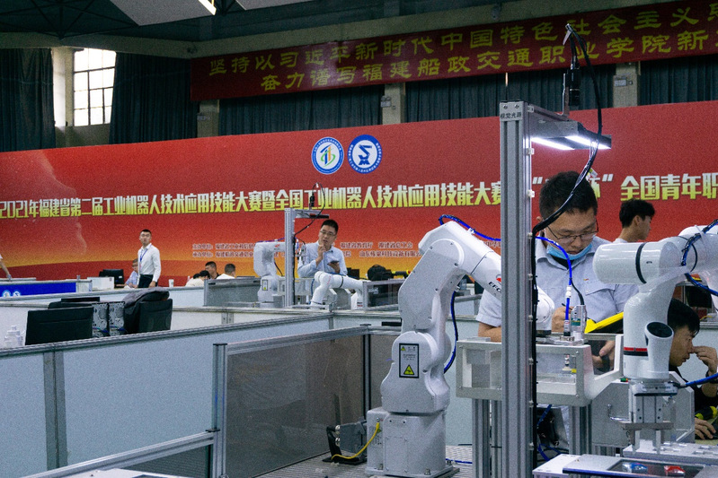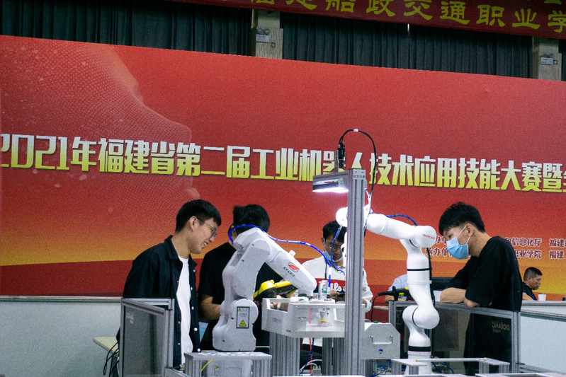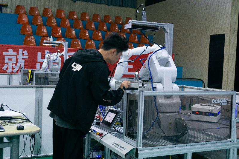 全國(guó)工業(yè)機(jī)器人技術(shù)應(yīng)用技能大賽培訓(xùn)現(xiàn)場(chǎng)
