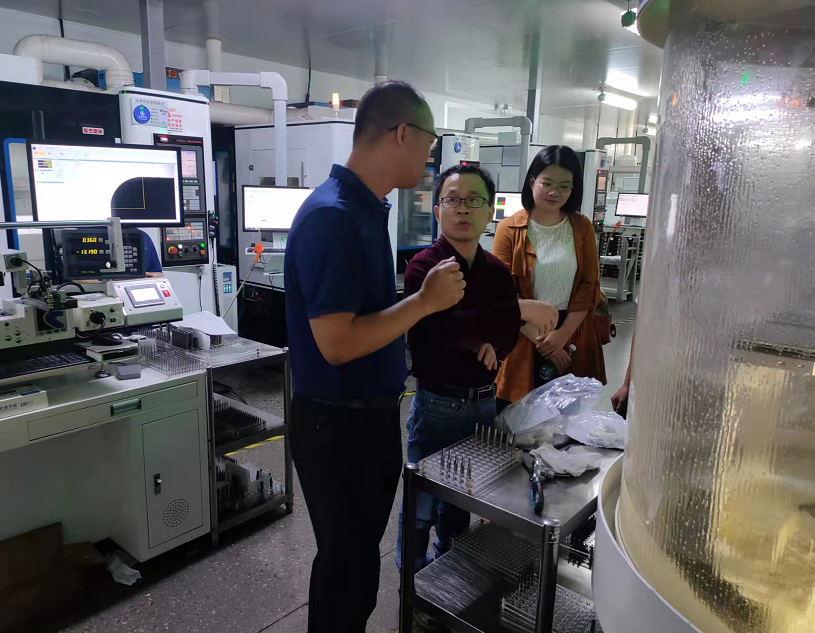 學院一行先后參觀了企業(yè)產品研發(fā)室、生產車間、設備生產組裝車間等,并同企業(yè)代表開展座談交流。會上,校企雙方圍繞開拓就業(yè)渠道和就業(yè)崗位、開展企業(yè)人才需求調查等方面展開交流,并期望校企雙方能夠加強科學研究、人才培養(yǎng)、學術交流和教學實踐等方面的合作,取得互利共贏的豐碩成果。