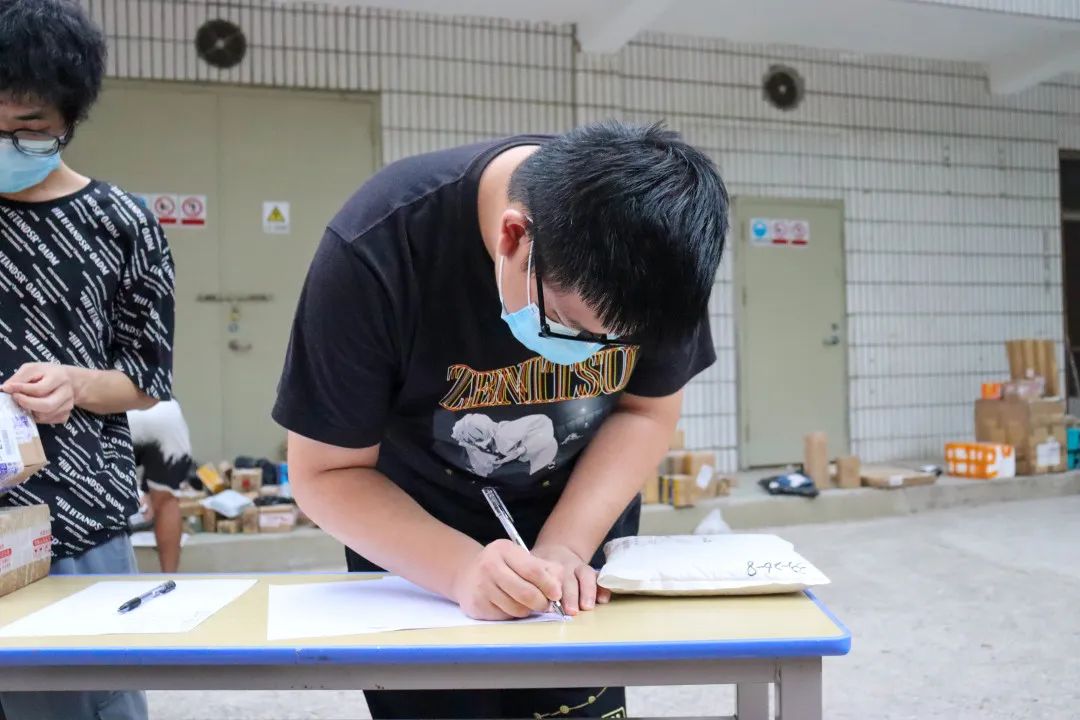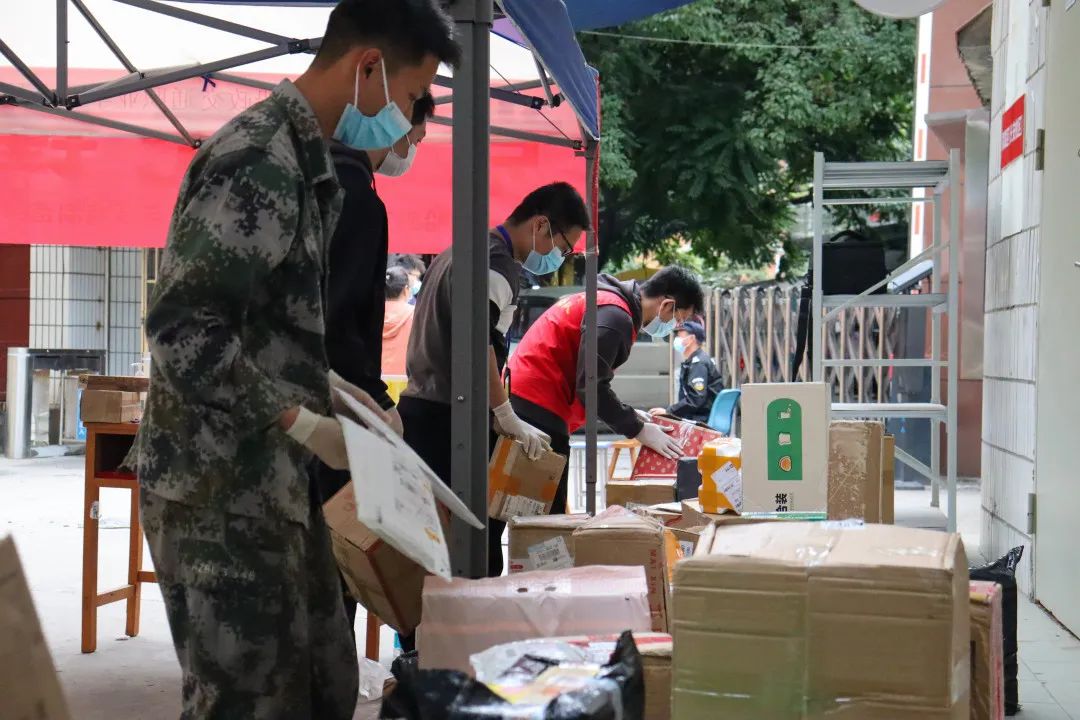我們隔離病毒,但不隔離愛。機(jī)械與智能制造學(xué)院半軍事化管理委員會(huì)及黨員先鋒崗的志愿者們?cè)缭绲谋銇淼搅诵^(qū)門口進(jìn)行學(xué)生快遞的病毒消殺以及分揀工作,他們按取件碼將快遞歸類,便于同學(xué)們進(jìn)行尋找。與此同時(shí),機(jī)械與智能制造學(xué)院輔導(dǎo)員許思維、蘇梅貴以及吳夢(mèng)煒紛紛加入到此次活動(dòng)中,助力此次活動(dòng)的順利開展。輔導(dǎo)員們紛紛表示:雖然此次工作所需耗費(fèi)人力物力精力較大,但我們?nèi)孕璞兄盀閷W(xué)生辦實(shí)事”的工作態(tài)度,幫助學(xué)生們解決困難,而不是逃避困難,特別在這段特殊時(shí)期中,我們要與學(xué)生同舟共濟(jì),共克時(shí)艱。