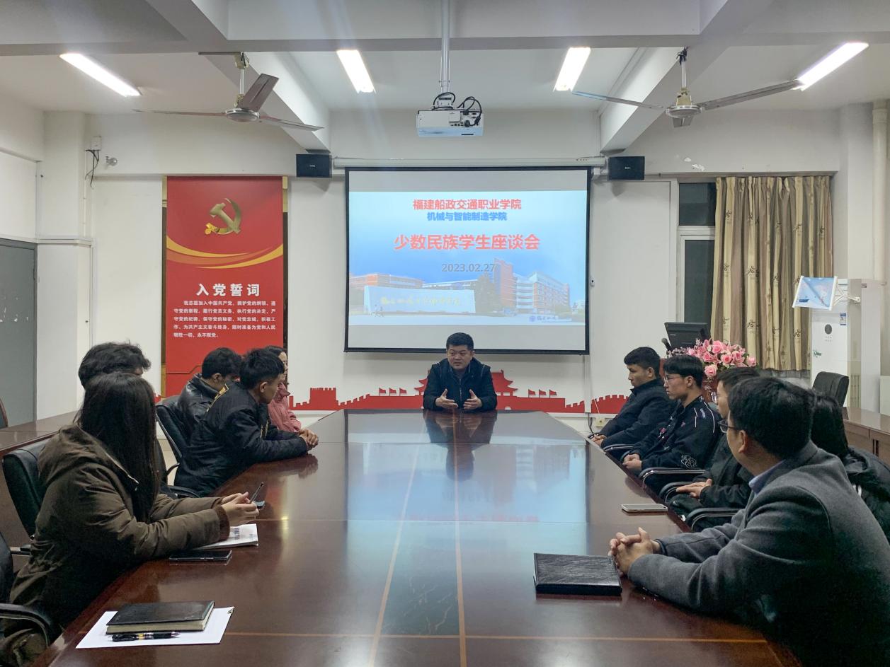 為全面落實(shí)中央民族工作會(huì)議精神,鑄牢中華民族共同體意識(shí),扎實(shí)推進(jìn)少數(shù)民族學(xué)生教育管理服務(wù)工作,進(jìn)一步了解少數(shù)民族學(xué)生在校學(xué)習(xí)生活情況,幫助解決實(shí)際困難,促進(jìn)學(xué)生成長(zhǎng)成才,2月27日晚,機(jī)械與智能制造學(xué)院在福道園26號(hào)樓305召開(kāi)少數(shù)民族座談會(huì)。學(xué)院黨總支書記林少丹,副書記肖秀林,輔導(dǎo)員官蕾、吳夢(mèng)煒以及少數(shù)民族學(xué)生代表參加本次座談會(huì)。