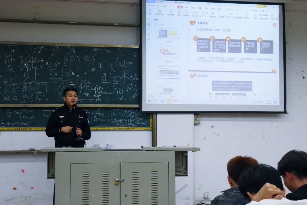在主題講座中,俞如峰警官通過真實案列分析,結(jié)合發(fā)生在校園內(nèi)以及周邊的典型案列,給同學(xué)們詳細(xì)地講解了預(yù)防火災(zāi)、交通安全、心理健康、人身安全等方面的相關(guān)知識,并對于女生如何防身問題,提出了“五不要”的建議。正確引導(dǎo)同學(xué)們重視校園安全問題,潛移默化地讓同學(xué)們改正生活中的不良習(xí)慣。呼吁同學(xué)們牢固樹立安全防患觀念,增強安全意識和自我保護能力,學(xué)會運用知識保護自己的人身安全。