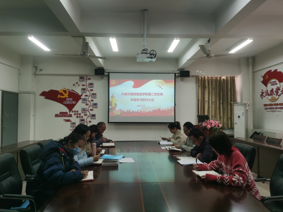 2022年1月7日,機(jī)械與智能制造學(xué)院第二黨支部召開(kāi)專題學(xué)習(xí)研討大會(huì),組織學(xué)習(xí)習(xí)近平總書(shū)記在黨的十九屆六中全會(huì)的重要講話精神、習(xí)近平總書(shū)記在慶祝中國(guó)共產(chǎn)黨成立100周年大會(huì)的重要講話精神、習(xí)近平總書(shū)記在黨史學(xué)習(xí)教育動(dòng)員大會(huì)等發(fā)表的重要講話精神、習(xí)近平總書(shū)記對(duì)福建工作的重要講話重要指示批示精神、《中國(guó)共產(chǎn)黨章程》、《中國(guó)共產(chǎn)黨組織工作條例》、《中共中央關(guān)于黨的百年奮斗重大成就和歷史經(jīng)驗(yàn)的決議》、中國(guó)共產(chǎn)黨福建省第十一次代表大會(huì)、福建省委十一屆一次全會(huì)精神等文件精神,為開(kāi)好組織生活會(huì)、做好民主評(píng)議黨員工作打牢思想基礎(chǔ)。