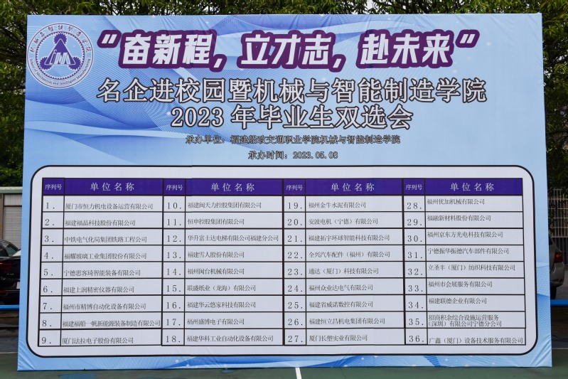 為扎實開展學(xué)習(xí)貫徹習(xí)近平新時代中國特色社會主義思想主題教育,牢牢把握“學(xué)思想、強黨性、重實踐、建新功”的總要求,貫徹落實黨中央、國務(wù)院關(guān)于高校畢業(yè)生就業(yè)工作的決策部署,扎實推進我院2023屆畢業(yè)生就業(yè)工作,積極響應(yīng)團中央號召開展“共青團促進大學(xué)生就業(yè)行動”,為用人單位和畢業(yè)生搭建供需橋梁,服務(wù)大學(xué)生實習(xí)就業(yè)和融入社會,我院舉辦“福建船政交通職業(yè)學(xué)院機械與智能制造學(xué)院2023屆畢業(yè)生夏季雙選會”,為我院即將畢業(yè)的2023屆畢業(yè)生聚合優(yōu)質(zhì)就業(yè)資源,引導(dǎo)同學(xué)們積極投身社會實踐、掌握求職技巧,促進畢業(yè)生高質(zhì)量就業(yè)。