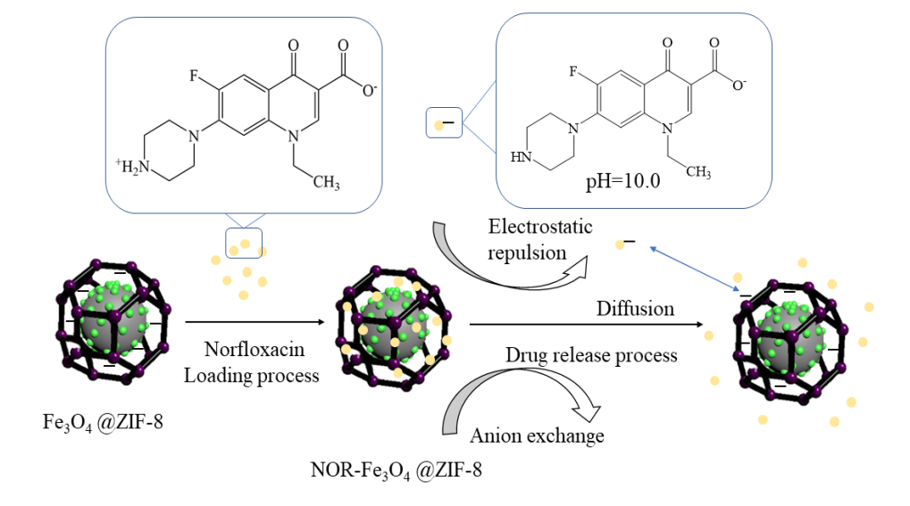 Fig. 2. Release mechanism of norfloxacin by Fe3O4@ZIF-8.