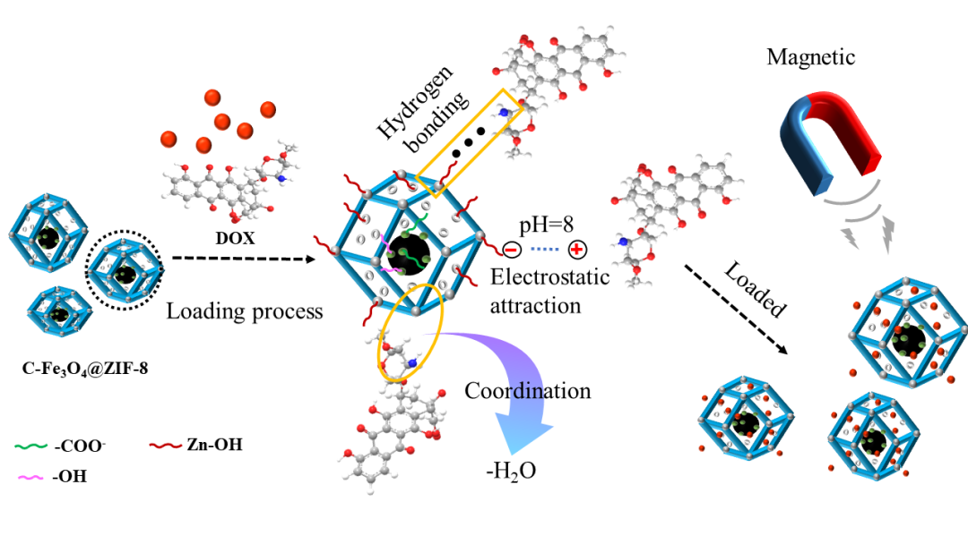 Fig. 2 The proposed mechanism of DOX loading on C-Fe3O4@ZIF-8 nanoparticles.