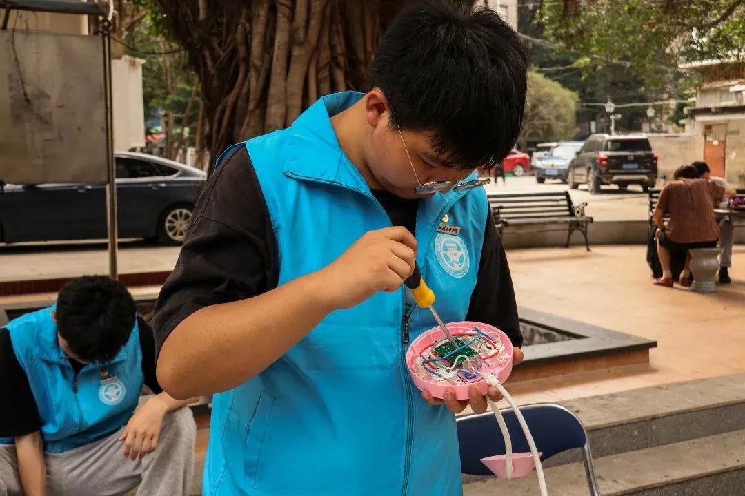 活動(dòng)現(xiàn)場(chǎng),“械小幫”志愿服務(wù)隊(duì)志愿者們準(zhǔn)備好工具,維修物品?,F(xiàn)場(chǎng)教學(xué)講解,如何檢測(cè),認(rèn)真查找問(wèn)題分析故障原因,對(duì)無(wú)法修好的電器向居民說(shuō)明損壞原因,提供維修建議。志愿者們熱情洋溢,用細(xì)心與微笑服務(wù)群眾,用熟練的維修技術(shù)為居民排憂解難,以扎實(shí)的專業(yè)技術(shù)、熱情細(xì)致的服務(wù),贏得了居民對(duì)“械小幫”志愿服務(wù)隊(duì)的贊譽(yù),并表示志愿者們服務(wù)熱情,有耐心,還能免費(fèi)服務(wù),希望能長(zhǎng)期來(lái)社區(qū)開(kāi)展活動(dòng)。
