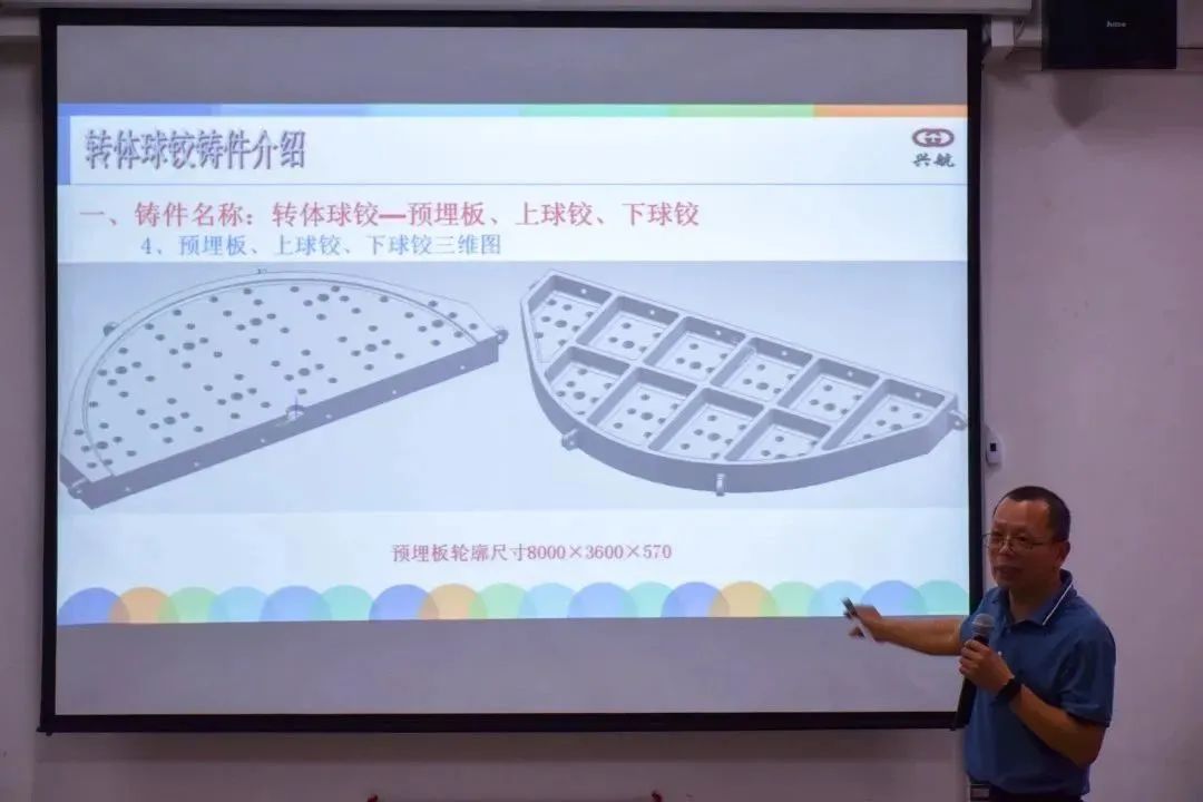 鄭建斌教授在講座上向大家分享了大橋梁鑄鋼件的工藝設(shè)計(jì)理念及生產(chǎn)實(shí)踐,并圍繞轉(zhuǎn)體球鉸、索鞍體鑄件與座板鑄件展開(kāi)詳細(xì)介紹,同時(shí)結(jié)合生活實(shí)際向現(xiàn)場(chǎng)同學(xué)們分享了大橋梁鑄鋼構(gòu)件的實(shí)際運(yùn)用。