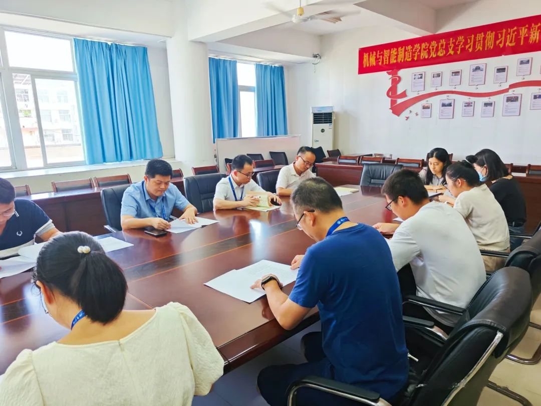 為深入開(kāi)展學(xué)習(xí)貫徹習(xí)近平新時(shí)代中國(guó)特色社會(huì)主義思想主題教育,引領(lǐng)學(xué)院黨員深化理論武裝,堅(jiān)定理想信念,錘煉政治品格,努力在以學(xué)鑄魂、以學(xué)增智、以學(xué)正風(fēng)、以學(xué)促干方面取得實(shí)實(shí)在在的成效。2023625日下午1610,機(jī)械與智能制造學(xué)院開(kāi)展學(xué)習(xí)貫徹習(xí)近平新時(shí)代中國(guó)特色社會(huì)主義思想主題教育讀書(shū)班學(xué)習(xí)。機(jī)械與智能制造學(xué)院書(shū)記林少丹、院長(zhǎng)楊開(kāi)懷、副書(shū)記肖秀林、副院長(zhǎng)陳貴清、各教研室主任及各支部委員共同參加會(huì)議。