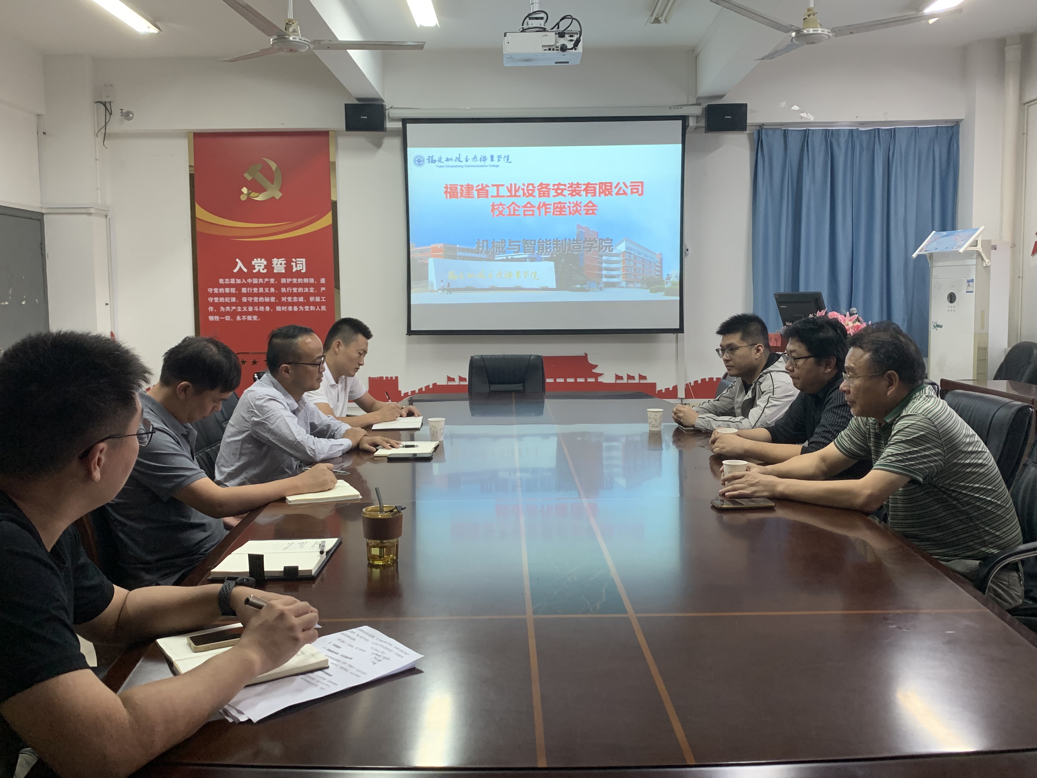 為豐富“工匠型人才”培養(yǎng)途徑,拓寬校企合作渠道,10月11日下午,福建省工業(yè)設(shè)備安裝有限公司技術(shù)中心趙主任和鄭副主任一行受科技處劉杰老師邀請(qǐng)蒞臨機(jī)械與智能制造學(xué)院交流指導(dǎo)。機(jī)械學(xué)院副院長陳貴清、副書記肖秀林、以及相關(guān)專任教師參與了座談,雙方就人才培養(yǎng)、課程設(shè)計(jì)、實(shí)踐教學(xué)、科研合作等方面的校企合作進(jìn)行了深入的交談和探討。