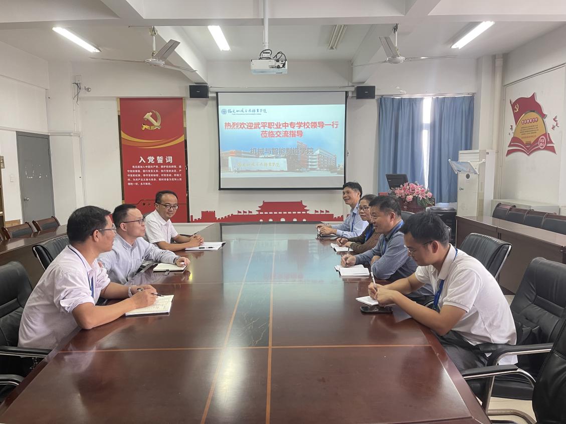 2023年11月8日,武平職業(yè)中專學(xué)校鐘副校長等一行四人來我院開展交流指導(dǎo)活動。交流會上,楊開懷院長對武平職業(yè)中專學(xué)校領(lǐng)導(dǎo)一行的到來表示熱烈歡迎,并簡要介紹了學(xué)院的基本情況,概述了目前學(xué)院現(xiàn)有的教學(xué)設(shè)備,實(shí)驗(yàn)室建設(shè)情況。我院副院長陳貴清也對武平中專職業(yè)學(xué)校一行人表示熱情歡迎,同時希望在后續(xù)的校校合作中,取得更進(jìn)一步的成效。