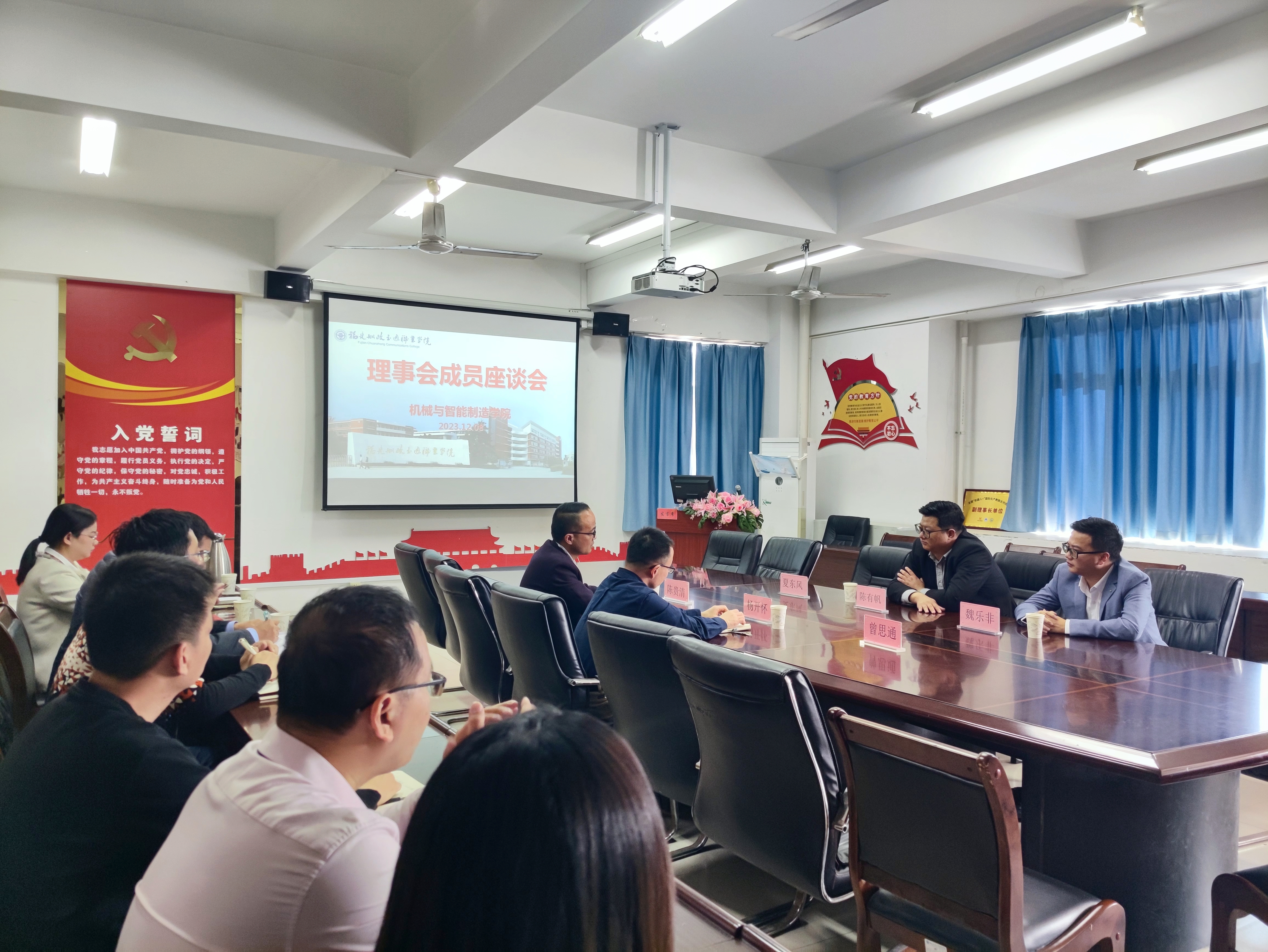 12月8日,邀請珠海格力智能裝備有限公司陳有帆銷售經(jīng)理和沃爾沃建筑設(shè)備有限公司福州經(jīng)銷商魏樂非經(jīng)理在26號樓305會議室召開理事會座談會。該會議旨在探討學(xué)院的發(fā)展方向,加強(qiáng)與企業(yè)合作,并分享關(guān)于人才培養(yǎng)、課程體系和實(shí)訓(xùn)室等方面的信息。陳貴清副院長主持了會議,楊開懷院長、各教研室主任、實(shí)訓(xùn)中心正副主任、骨干教師、分團(tuán)委書記、就業(yè)辦負(fù)責(zé)人等教師代表參加了會議。