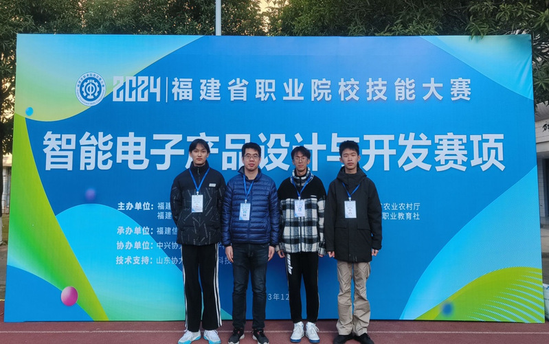 2023年12月23日,福建省職業(yè)院校技能大賽“智能電子產(chǎn)品設(shè)計(jì)與開發(fā)”賽項(xiàng)在福建信息職業(yè)技術(shù)學(xué)院舉行,來自全省九地市26支代表隊(duì)參賽。經(jīng)過緊張激烈的比賽,我院林恒青老師、鄭君輝、湯曹榕、余運(yùn)奇同學(xué)獲得團(tuán)體賽三等獎。