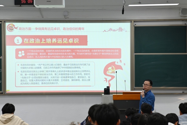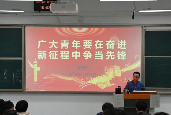 11月24日下午,楊開懷院長以廣大青年要在奮進新征程中爭當(dāng)先鋒為題,通過政治、精神、格局、利益、行動等方面來告訴各入黨積極分子應(yīng)爭做一個怎樣的青年以及在爭做這樣一個青年的基礎(chǔ)上應(yīng)該怎么做。