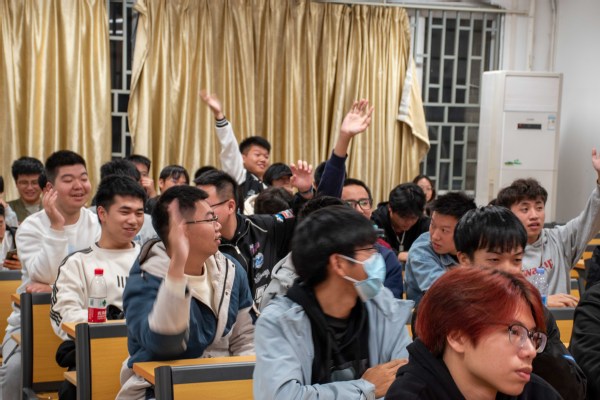 答題環(huán)節(jié)緊張刺激,同學(xué)們爭先搶答,氣氛活躍,一雙雙高高舉起的手臂充分展現(xiàn)出了參賽選手儲備豐厚的國家憲法相關(guān)知識。
