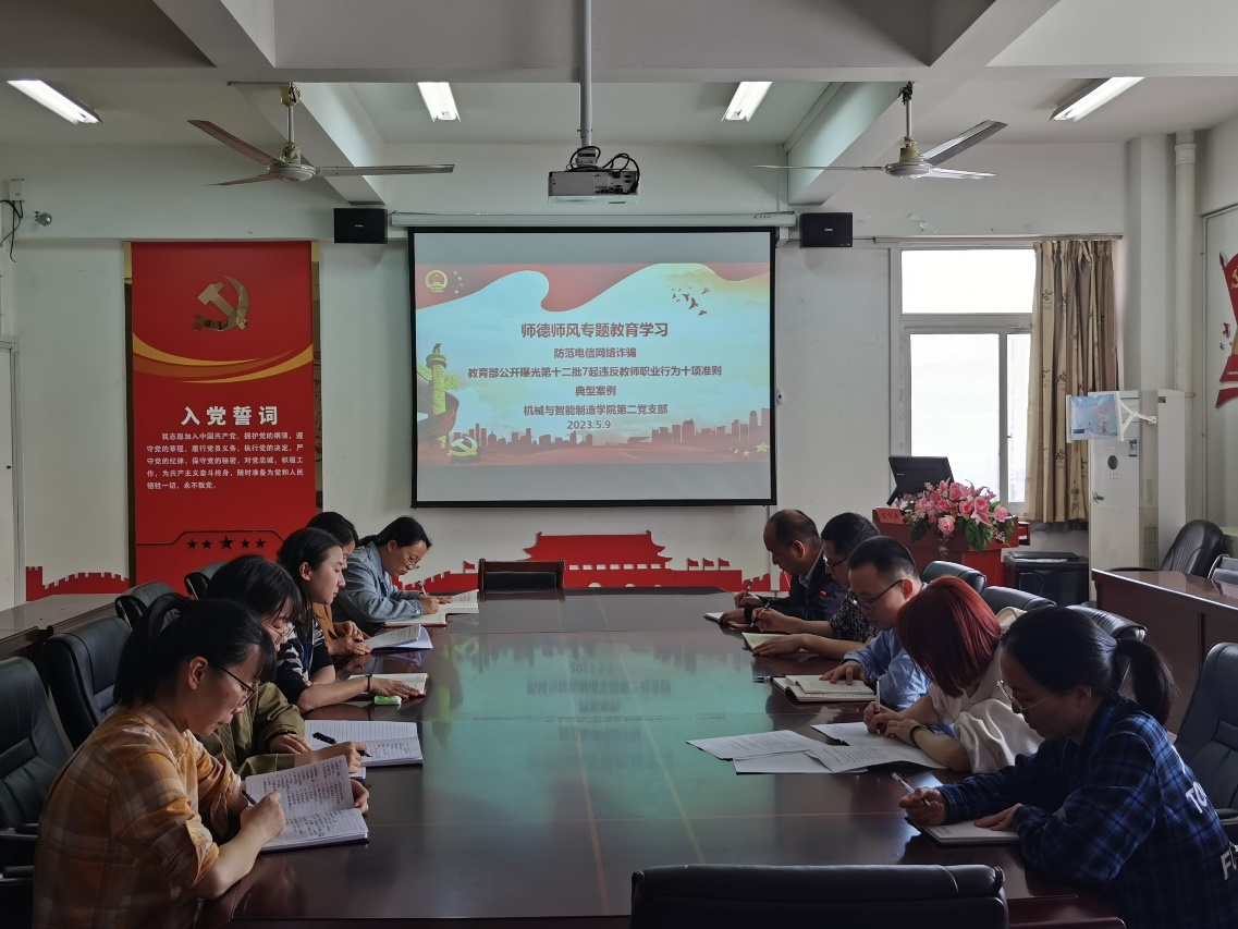 機(jī)械與智能制造學(xué)院第二黨支部開展《防范電信網(wǎng)絡(luò)詐騙》、《教育部公開曝光第十二批7起違反教師職業(yè)行為十項(xiàng)準(zhǔn)則典型案例》學(xué)習(xí)教育活動(dòng)。
