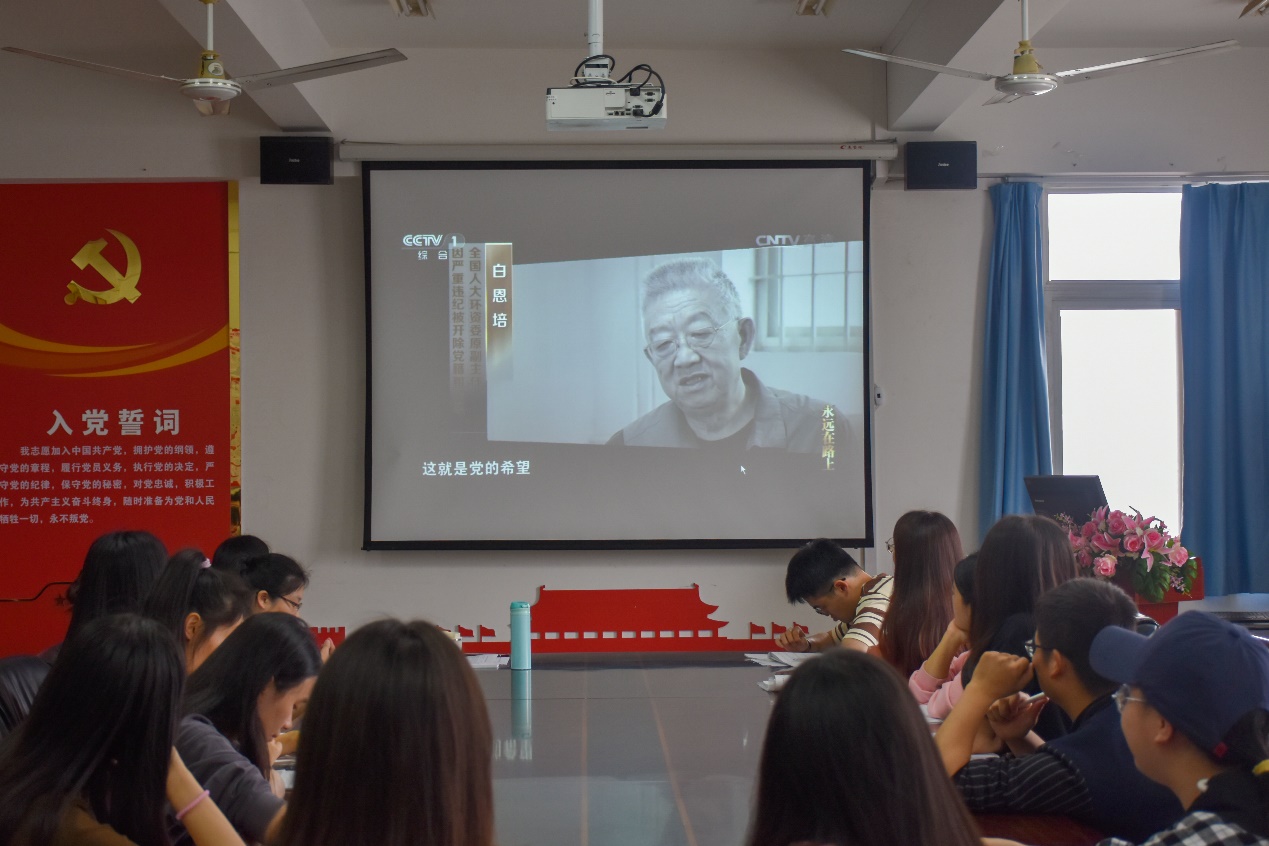 為深入貫徹黨的十八大以來黨中央把全面從嚴(yán)治黨提升到“四個(gè)全面”戰(zhàn)略布局,使黨員領(lǐng)導(dǎo)干部嚴(yán)守政治紀(jì)律和政治規(guī)矩,筑牢理想信念的根基。機(jī)械與智能制造學(xué)院學(xué)生黨支部于5月24日下午開展黨紀(jì)學(xué)習(xí)教育專題活動(dòng)。所有參加此次黨日活動(dòng)的學(xué)生黨支部成員一同觀看警示片《永遠(yuǎn)在路上——‘人心向背’》。