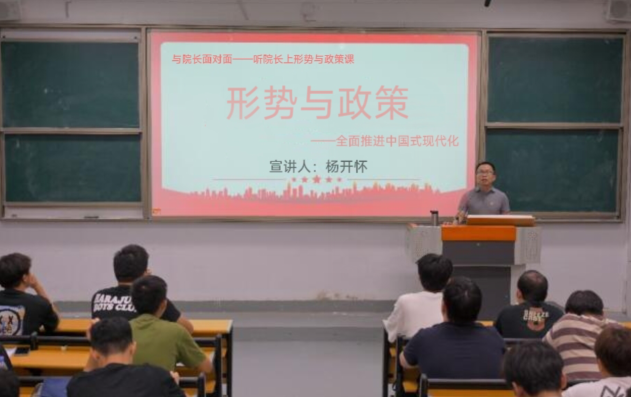 為了充分發(fā)揮思想政治理論課在大學生教育中的主渠道作用,機械與智能制造學院院長楊開懷2024618日晚上,在福道園八號樓的第一階梯教室,為22級入黨積極分子講授了一堂形式與政策課。