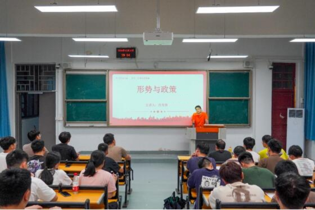 機(jī)械與智能制造學(xué)院黨總支副書(shū)記肖秀林,2024617日晚上在福道園八號(hào)樓的第一階梯教室就“世界變亂交織,中國(guó)篤行擔(dān)當(dāng)”為主題,為22級(jí)部分學(xué)生上了一堂形勢(shì)與政策課。