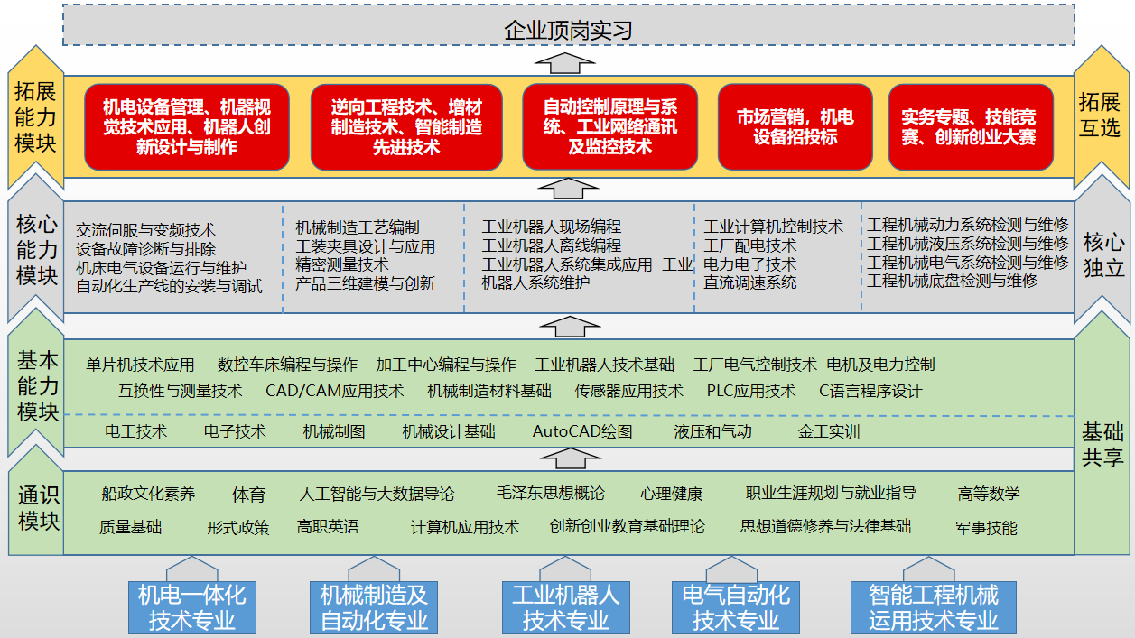 圖2 機(jī)械與智能制造專業(yè)群組群課程體系圖
