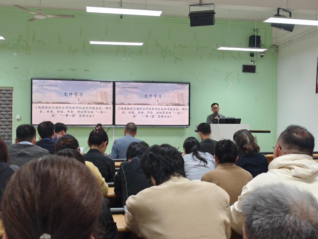 機(jī)械與智能制造學(xué)院組織開展學(xué)習(xí)《福建船政交通職業(yè)學(xué)院哲學(xué)社會科學(xué)報告會、研討會、講座、論壇、年會、講壇等活動“一會一報”“一事一報”管理辦法》