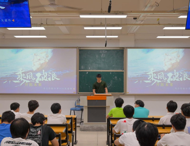 吳建煒學長不僅分享了自己在備考期間的心路歷程和應對策略,更是鼓勵同學們要保持樂觀的心態(tài),面對壓力時要學會調整自己,保持最佳的學習狀態(tài)吳建煒學長的分享,如同璀璨星辰照亮了考公路途的迷霧,不僅讓學子們對考公的廣闊天地有了更為深邃的認知,更在他們心中播撒下追夢的火花,點燃了逐夢前行的無限熱情與動力。此次交流,宛若一座燈塔,指引著迷航者找到了屬于自己的航道,讓同學們在夢想的海洋中更加清晰地勾勒出了前行的方向,那份追求卓越的堅定信念,在每個人心中生根發(fā)芽,愈發(fā)茁壯,誓要在未來的征途中,乘風破浪,直掛云帆濟滄海。