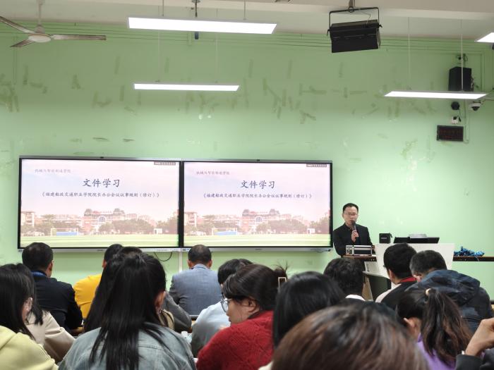 為進一步規(guī)范學(xué)院管理,提升治理效能,近日,我院組織全體教職工深入開展了《中共福建船政交通職業(yè)學(xué)院委員會會議議事規(guī)則(修訂)》和《福建船政交通職業(yè)學(xué)院院長辦公會議議事規(guī)則(修訂)》兩個制度的學(xué)習(xí)活動。本次活動由學(xué)院院長楊開懷領(lǐng)學(xué),旨在確保每位教職工都能深刻領(lǐng)會制度精神,并在實際工作中嚴(yán)格執(zhí)行。