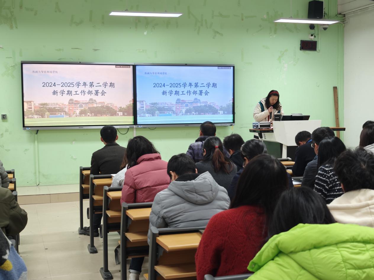 為明確新學(xué)期工作目標(biāo),統(tǒng)籌推進(jìn)各項工作任務(wù),2月19日下午,機械與智能制造學(xué)院在2號樓1-2召開2024-2025學(xué)年第二學(xué)期第一次全院大會暨新學(xué)期工作部署會。學(xué)院領(lǐng)導(dǎo)班子成員、全體教職工參加了會議。會議部署了2024-2025學(xué)年第二學(xué)期開學(xué)各項事宜和近期工作重點。
