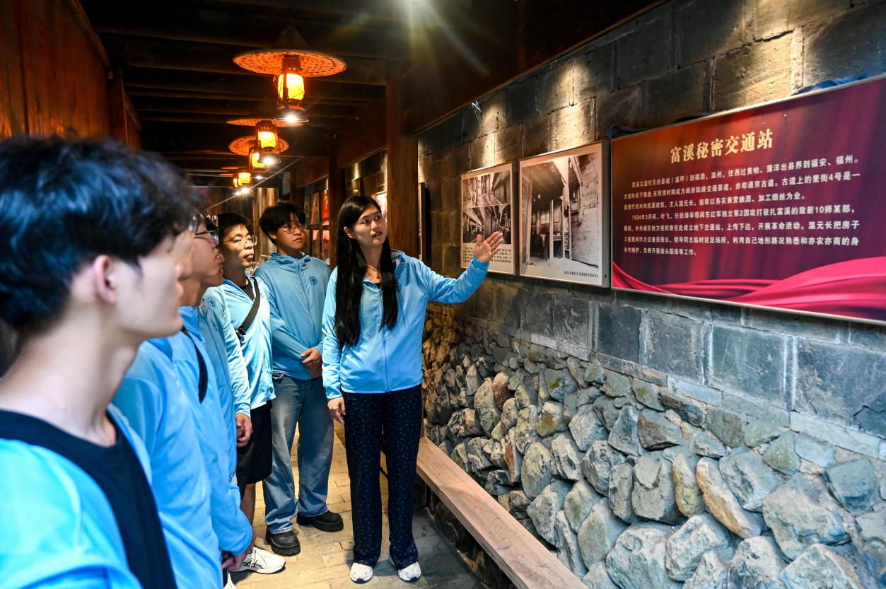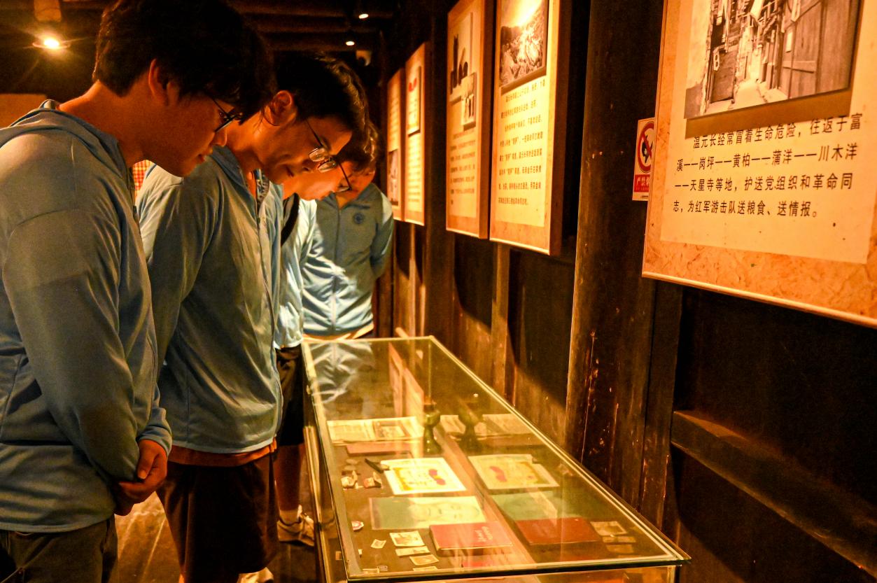 實(shí)踐團(tuán)成員參觀富溪鎮(zhèn)秘密交通站舊址)
