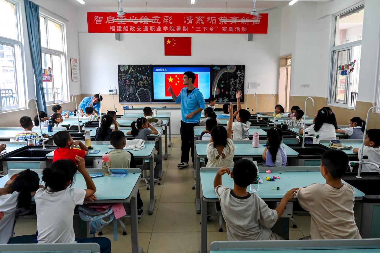 實(shí)踐團(tuán)成員為小朋友們帶來思政課-祖國旗幟在我心)